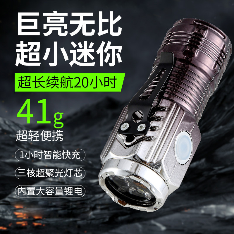 钥匙扣灯手电筒强光可充电超亮户外迷你小便携多功能随身工作led