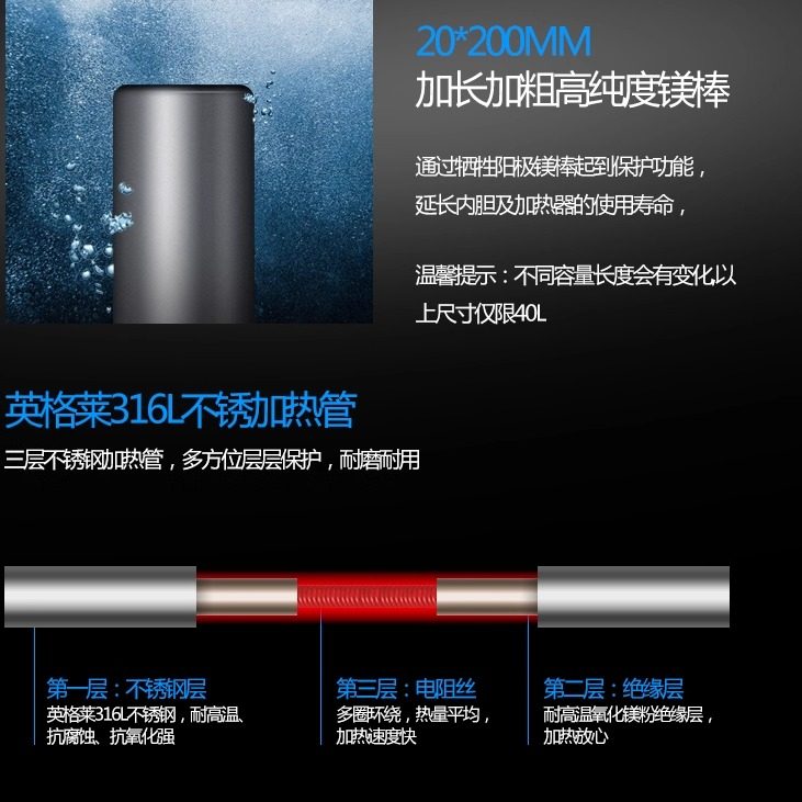 奥克斯电热水器直立式竖式直桶储水式圆桶节能家用即速热40升50L