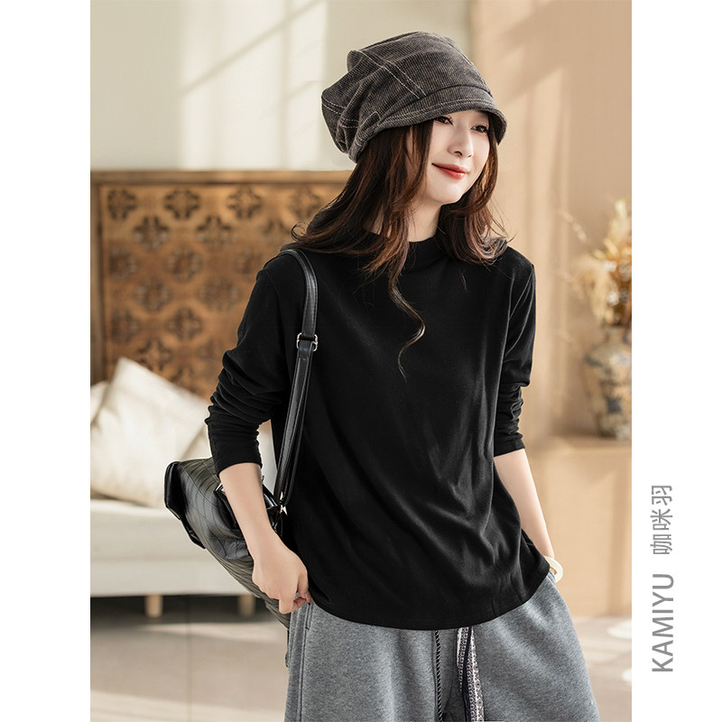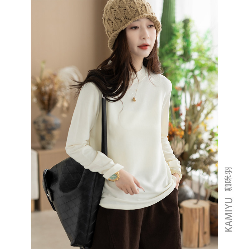 widelia十三行老板娘冬正肩小立领半高领打底衫弹力长袖T恤女9585