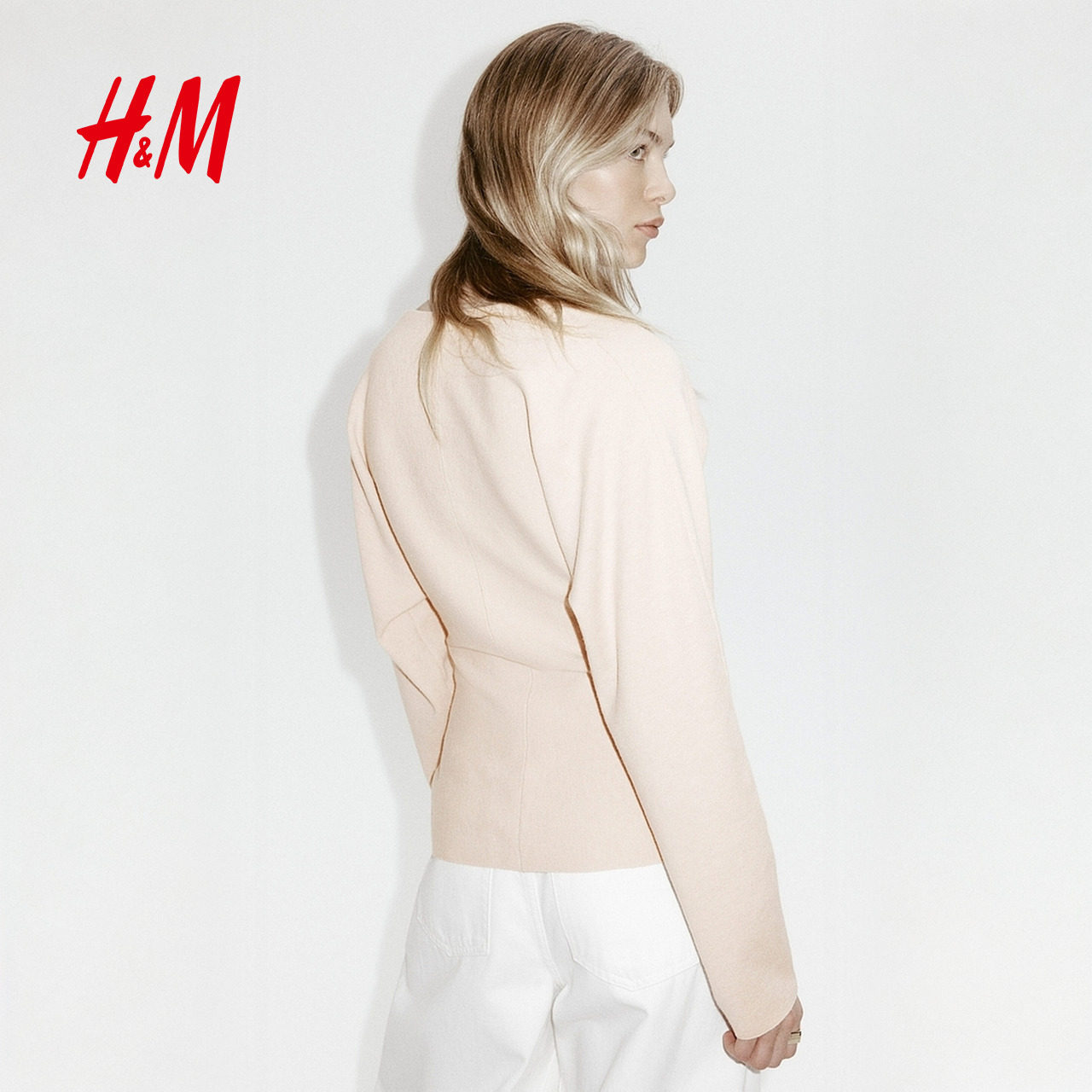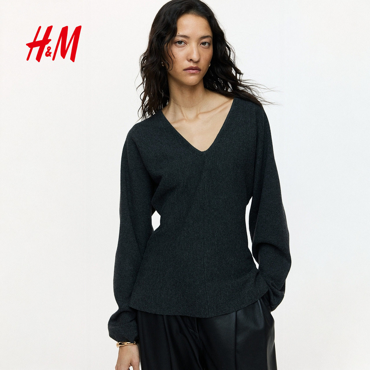 HM女装毛针织衫2026春季新款廓形针织衫静奢风红色打底衫1313628