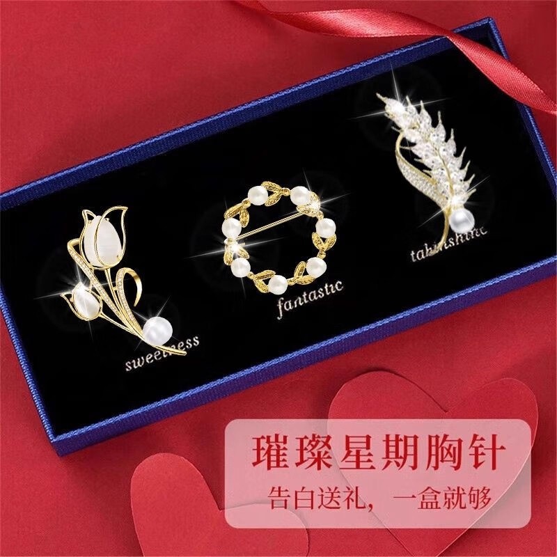 胸针女士高档轻奢品牌胸花礼盒套装生日礼物送老婆高级感珍珠别针