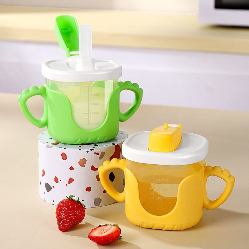 科巢儿童牛奶杯1-2-3岁以上宝宝喝奶瓶PPSU刻度直饮吸管水杯防摔