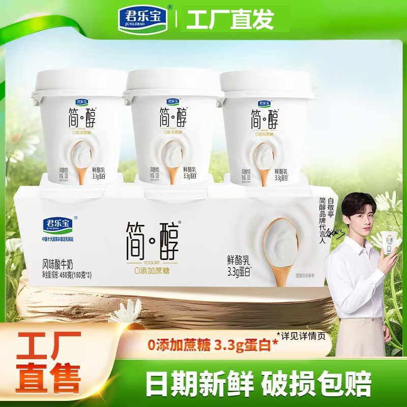 新品上市君乐宝简醇0添加蔗糖酸奶鲜酪乳150g杯装袋装风味酸牛奶