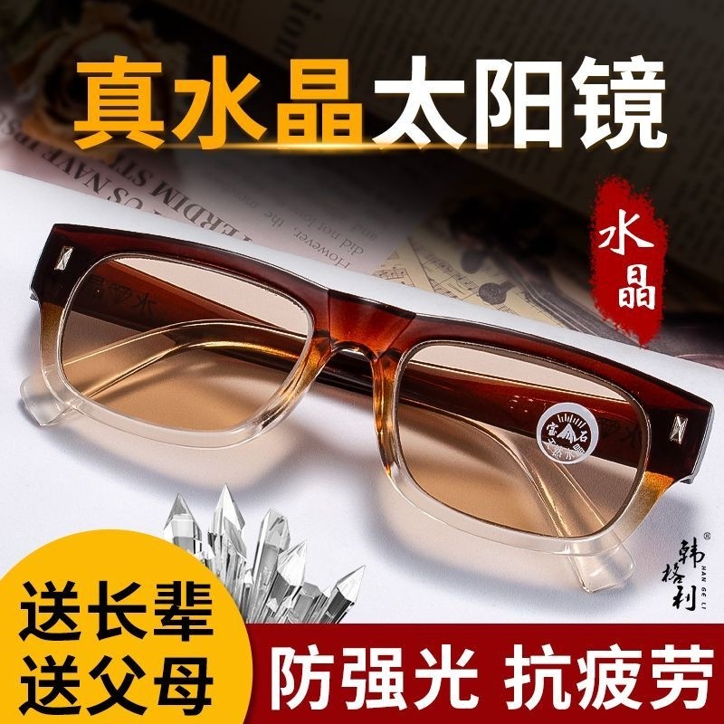 眼镜男天然水晶石头太阳镜正品大框遮光眼睛司机开车驾驶墨镜护目