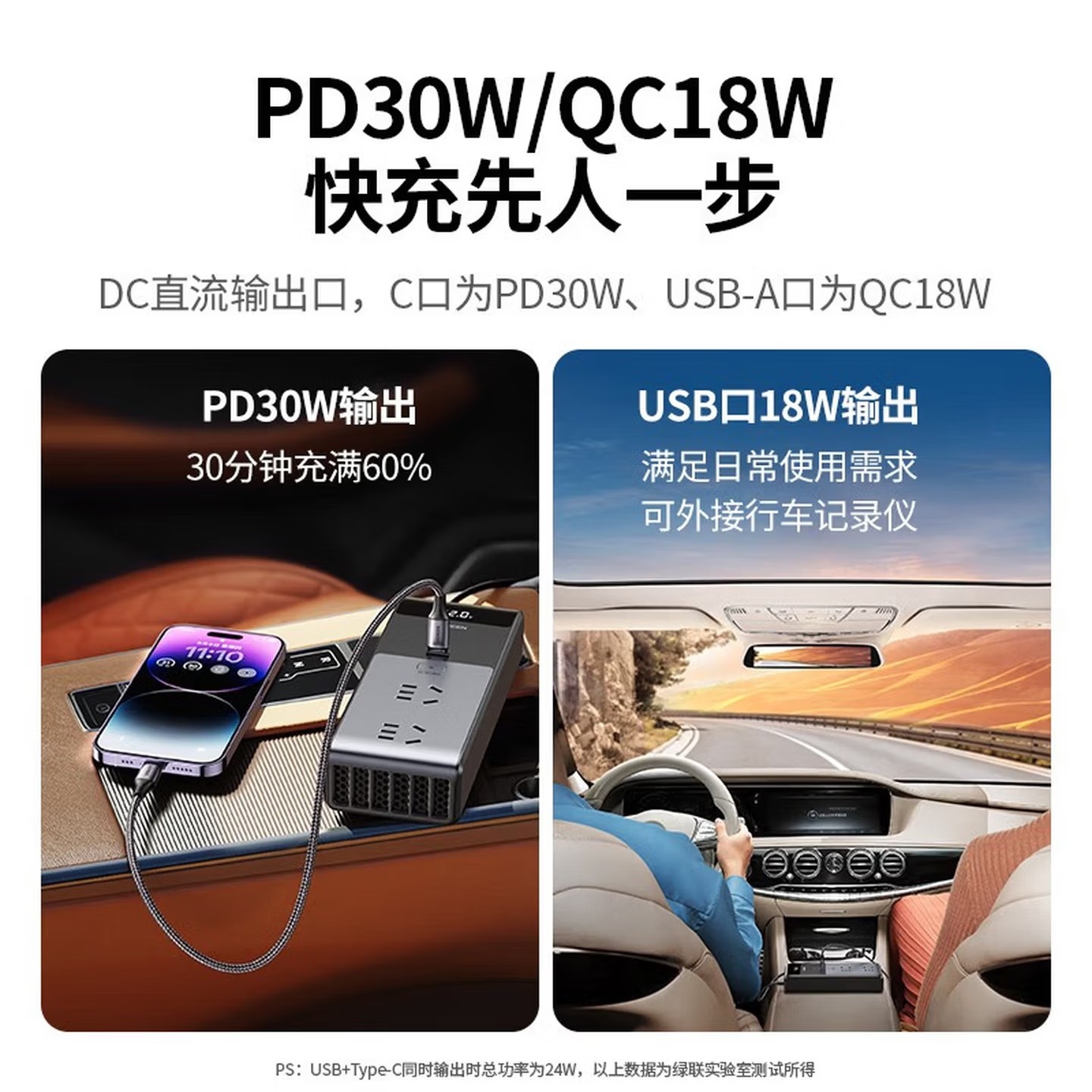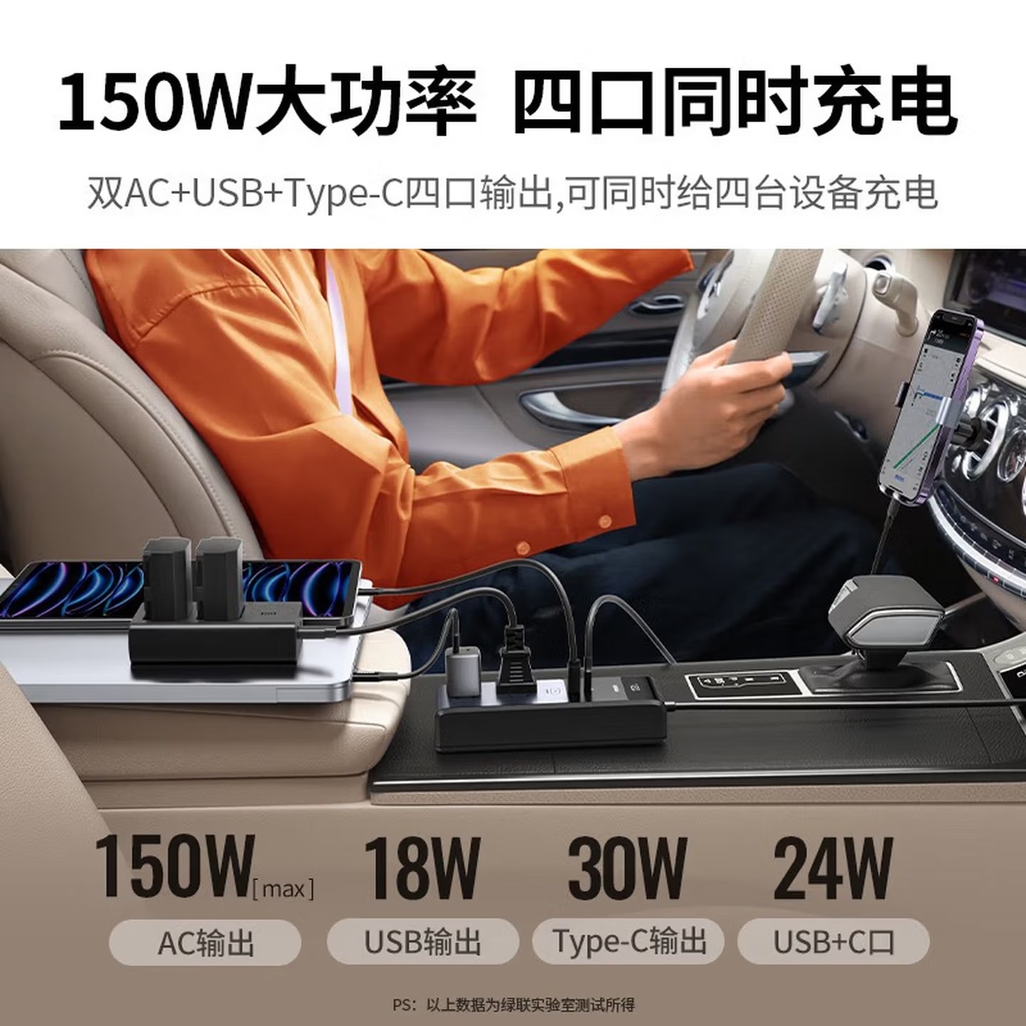 绿联车载逆变器12V转220V点烟器转换器150W大功率变压器充电插座