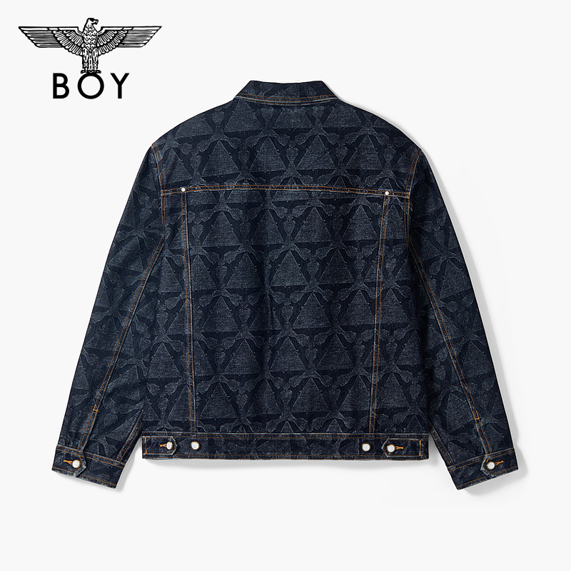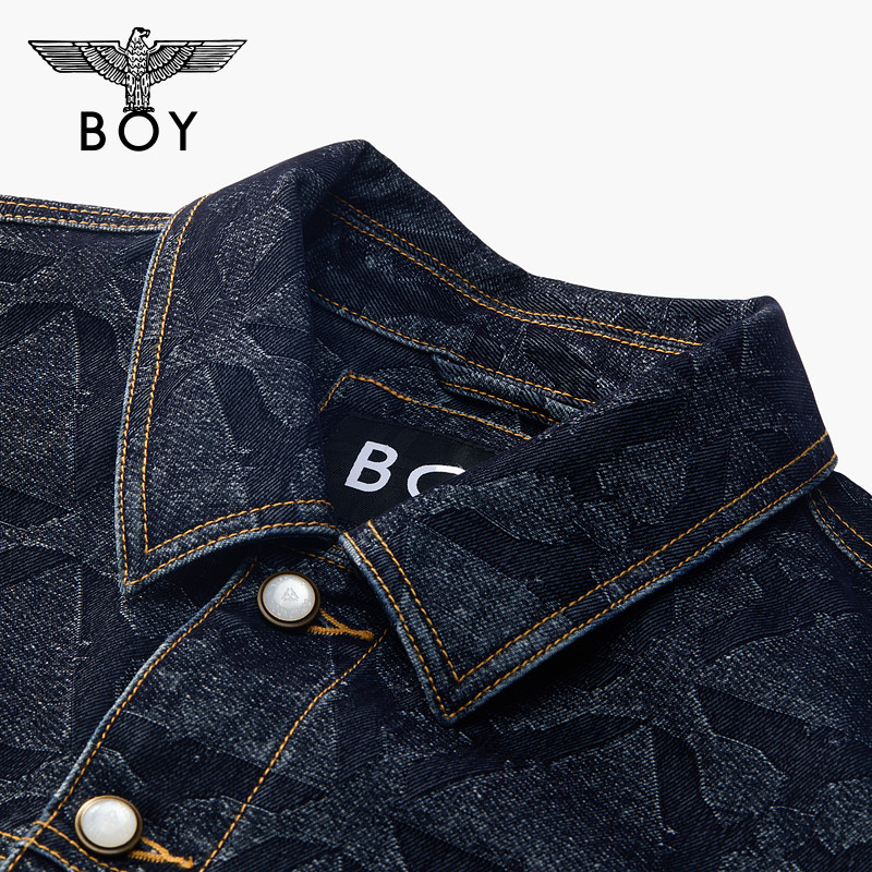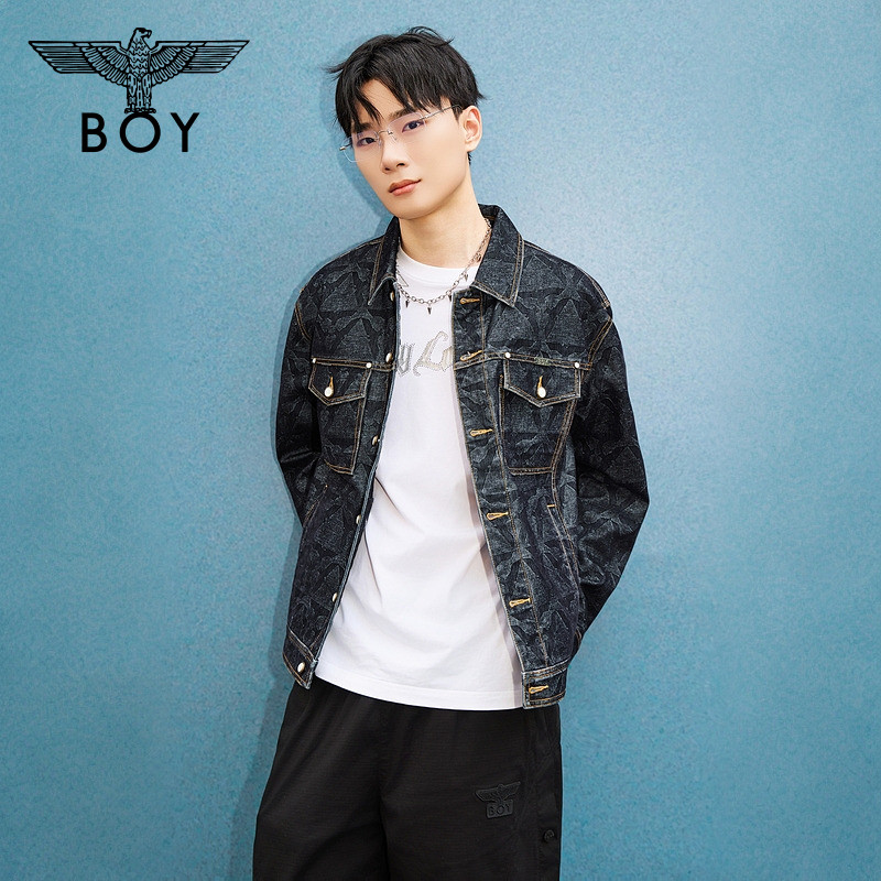 BOYLONDON25春季新款男女同款满印翻领水洗牛仔夹克外套N5001006