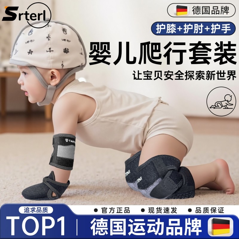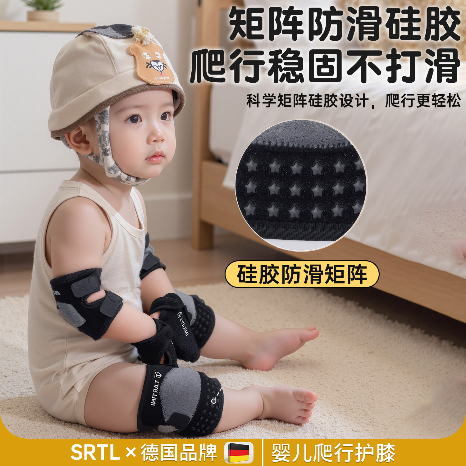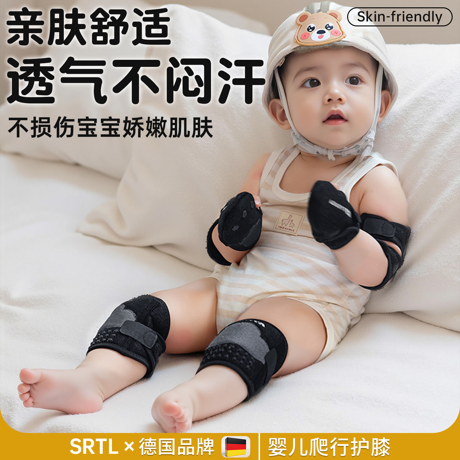 德国婴儿爬行护膝护肘装备防滑儿童宝宝学步防摔可调节膝盖护具夏