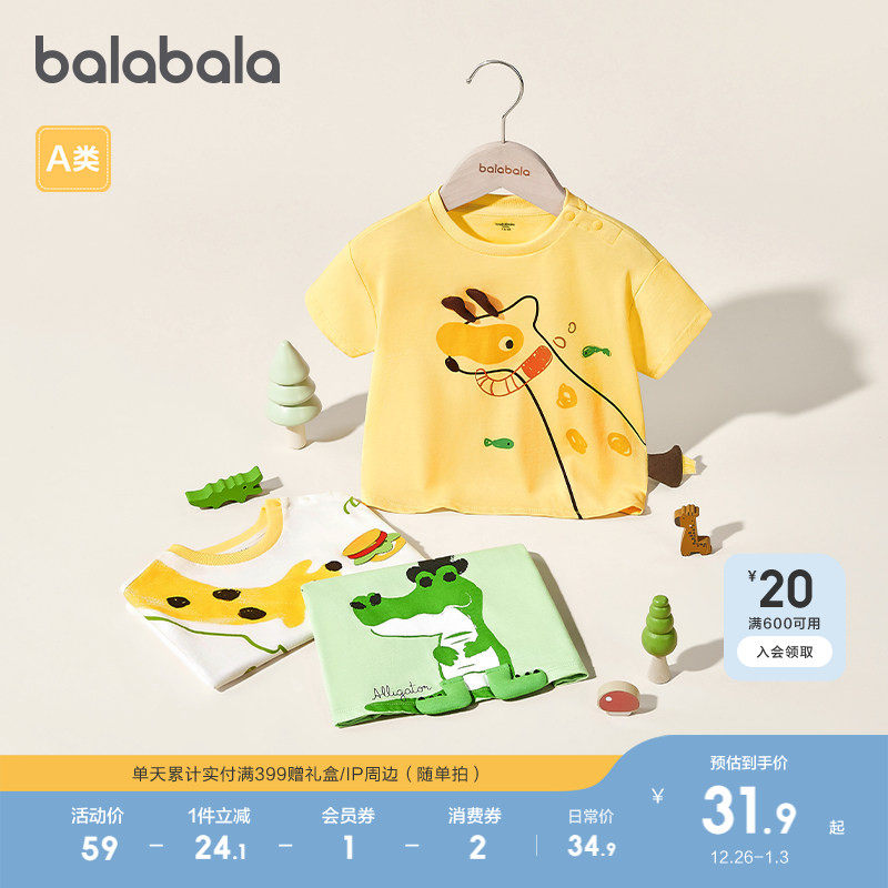 巴拉巴拉童装儿童宝宝t恤婴儿上衣2025春夏装女童男童短袖全棉萌