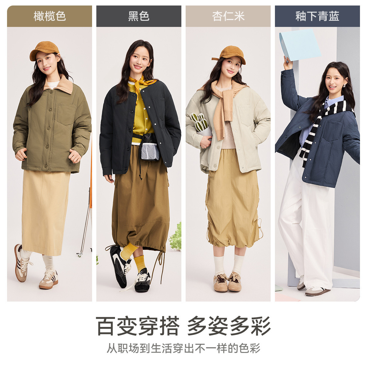【鞠婧祎同款】鸭鸭2025年冬新款百搭短款女士纯色立领羽绒服外套