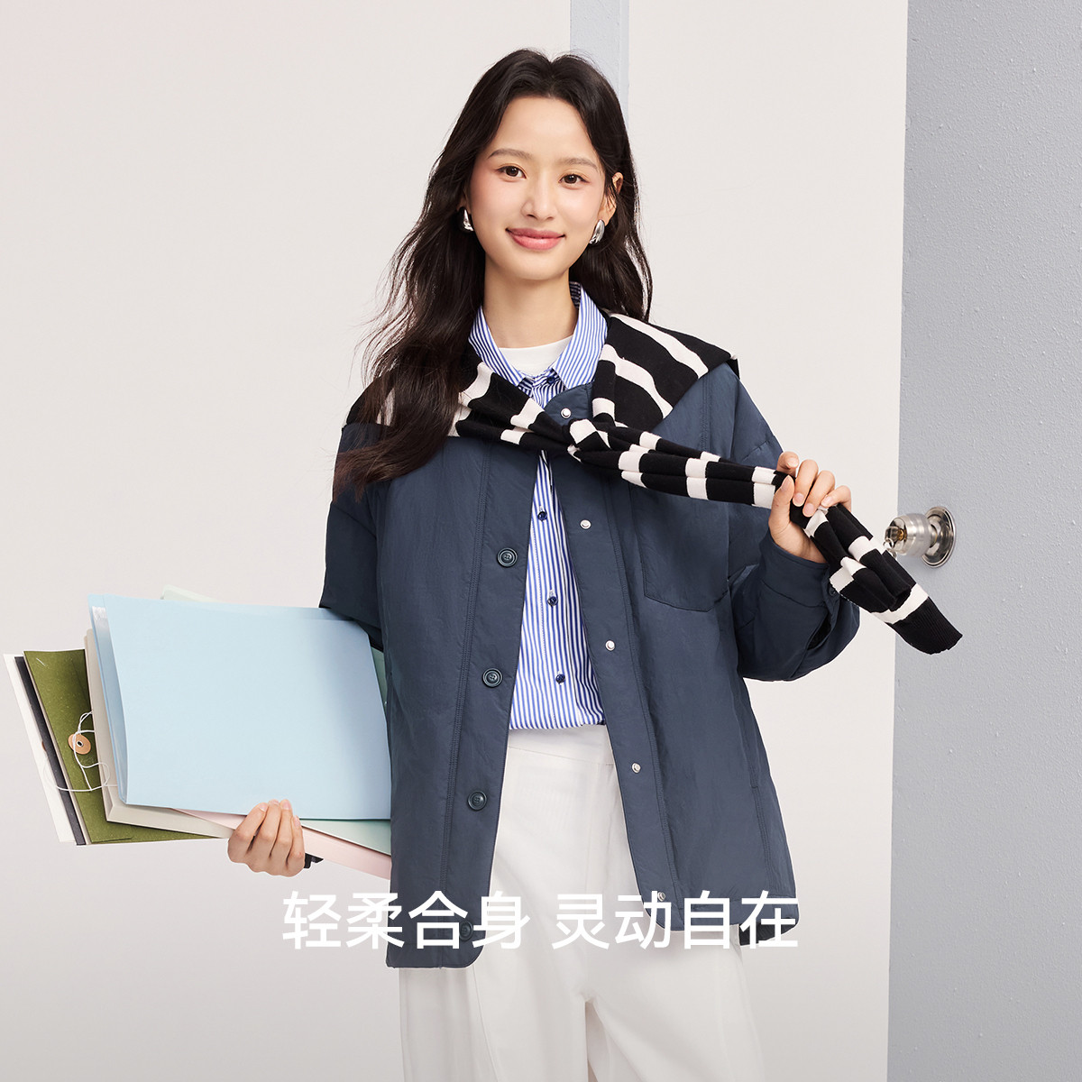 鸭鸭轻薄羽绒服女2025年秋冬反季短款立领修身舒适上衣内胆外套J