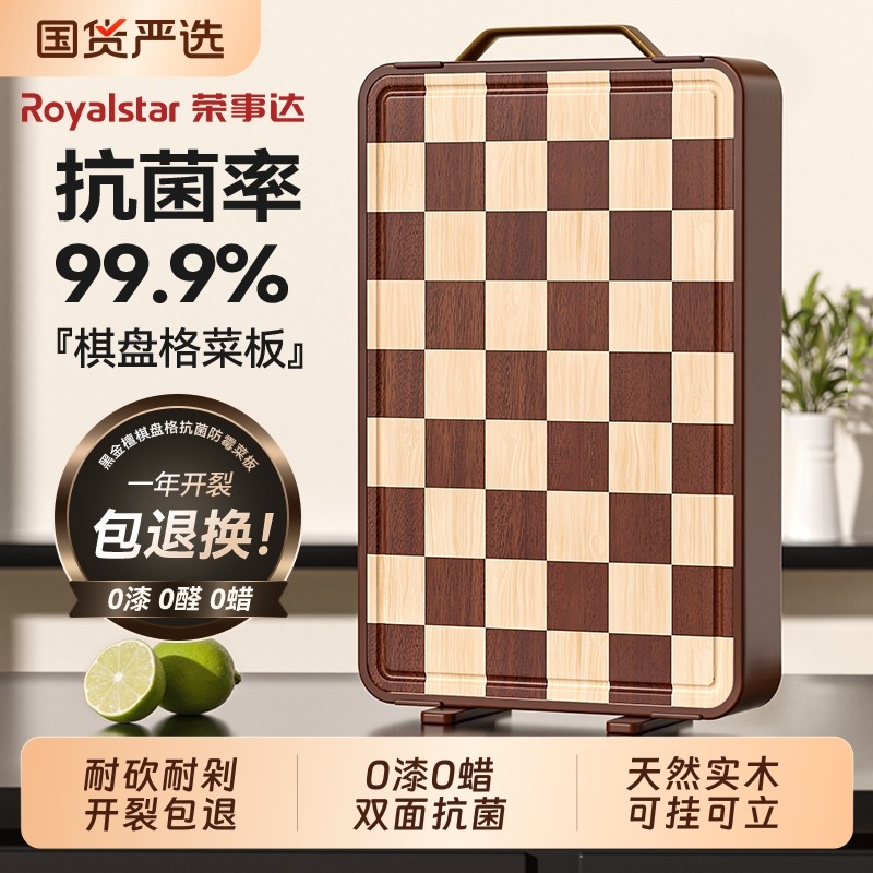 荣事达棋盘格菜板实木厨房专用家用抗菌防霉切菜板木菜板砧板案板