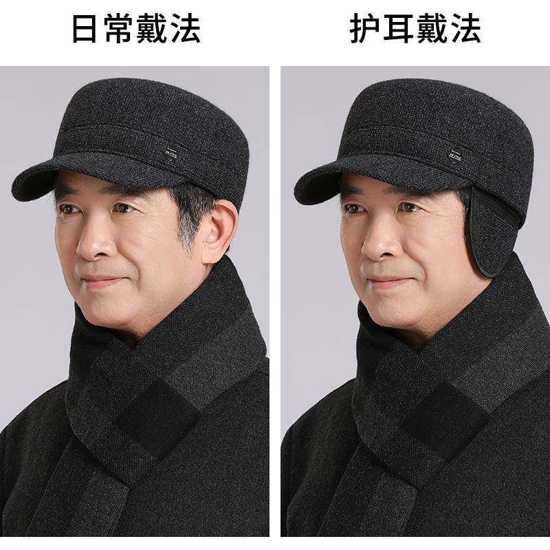 中老年人帽子男士冬天爸爸加厚保暖鸭舌帽爷爷老头护耳平顶帽棉帽
