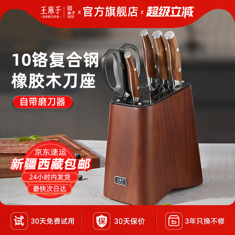 王麻子刀具套装组合厨房菜刀菜板二合一厨具全套家用厨刀官方正品