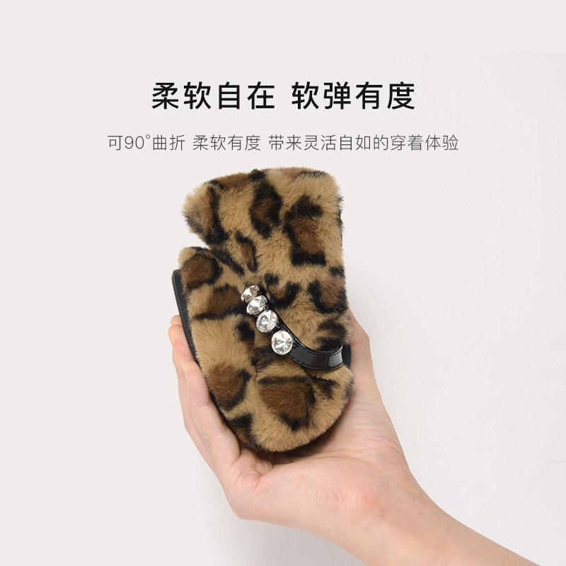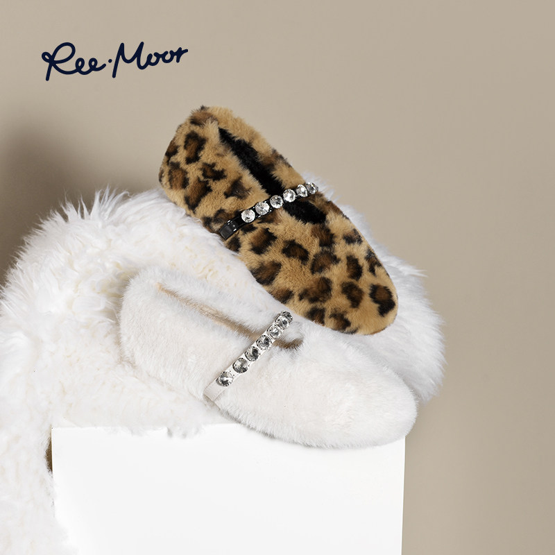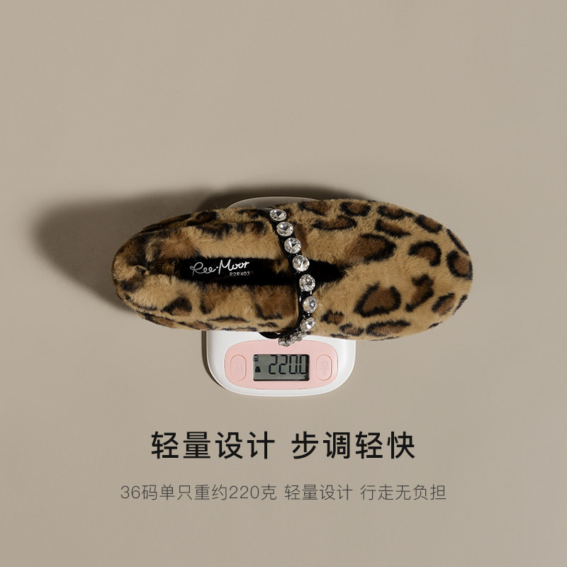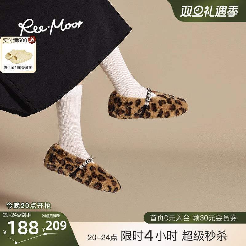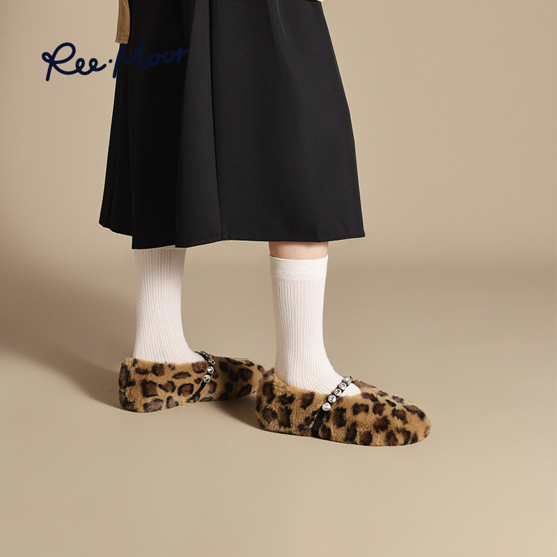 REEMOOR睿慕2025新款豹纹保暖加绒棉鞋外穿女鞋毛毛蛋卷鞋女