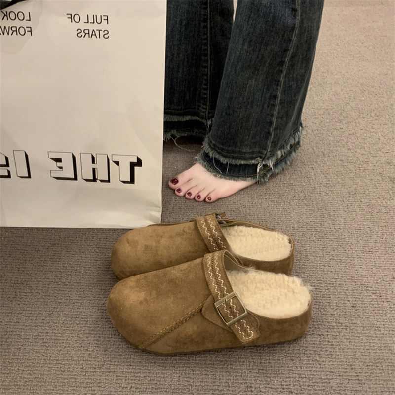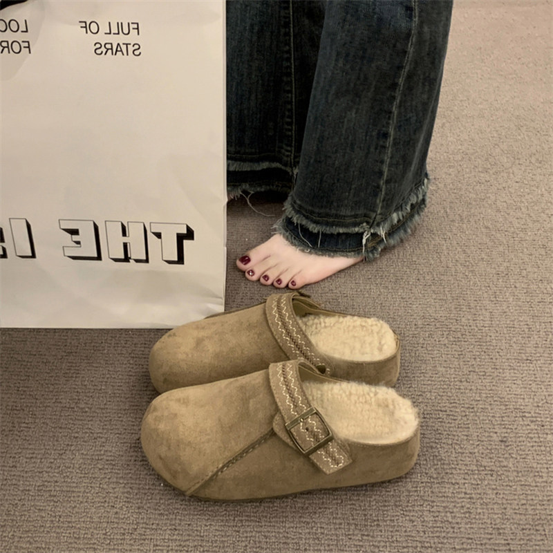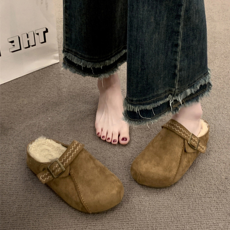 两穿厚底包头半拖鞋女2025秋冬新款内增高勃肯鞋百搭懒人勃肯单鞋