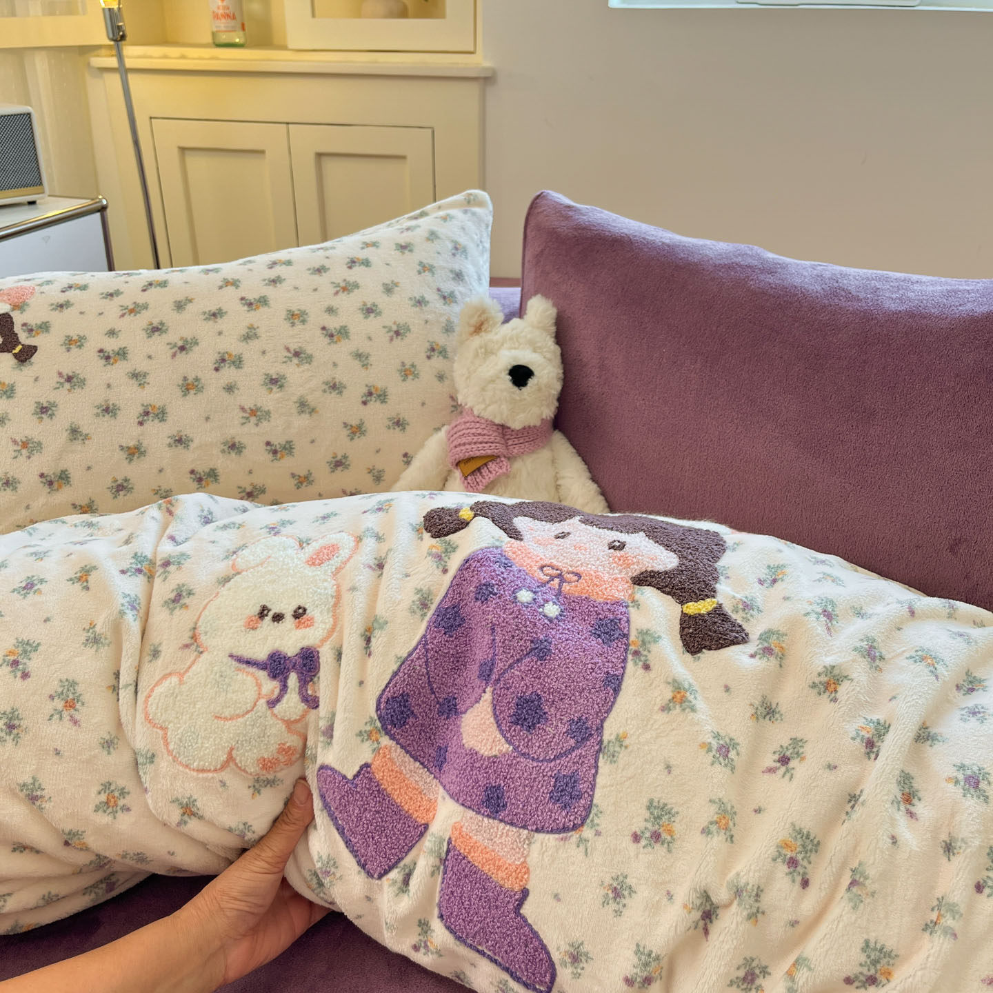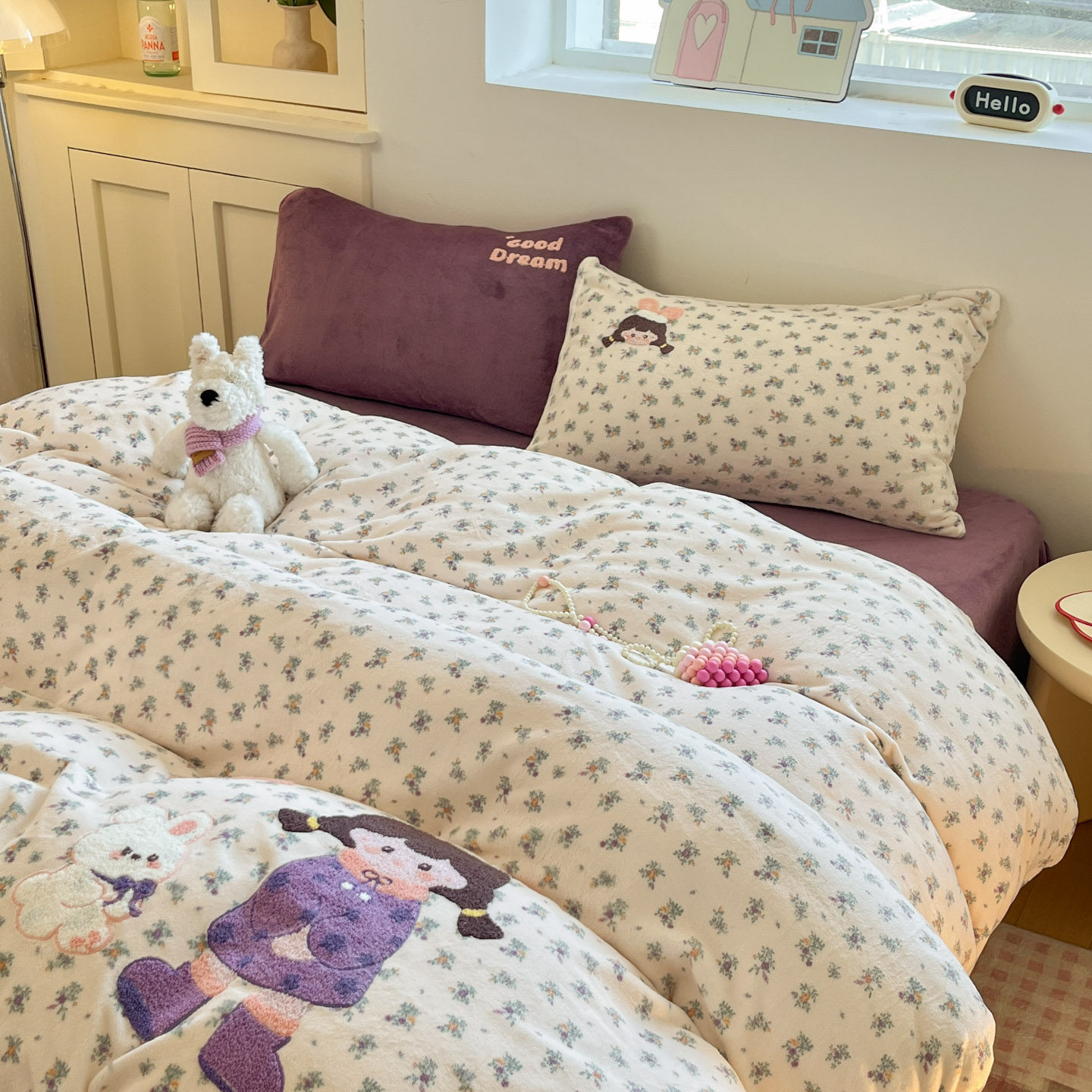 A类牛奶绒毛巾绣四件套冬季加厚珊瑚绒床单被套宿舍学生三件套件4