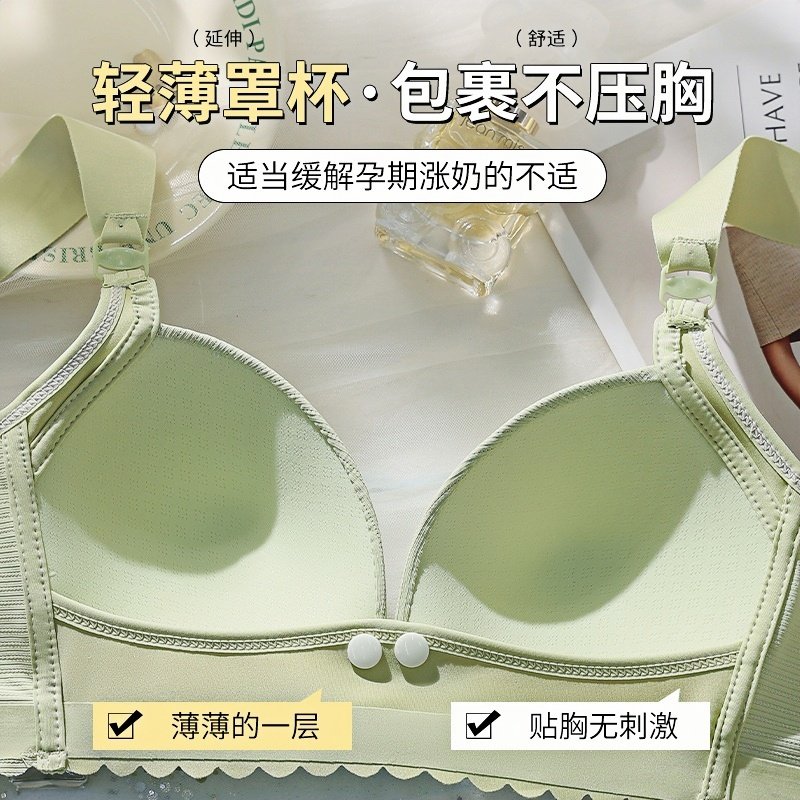 孕妇哺乳内衣聚拢防下垂产后喂奶怀孕期专用前开扣大码文胸罩前扣