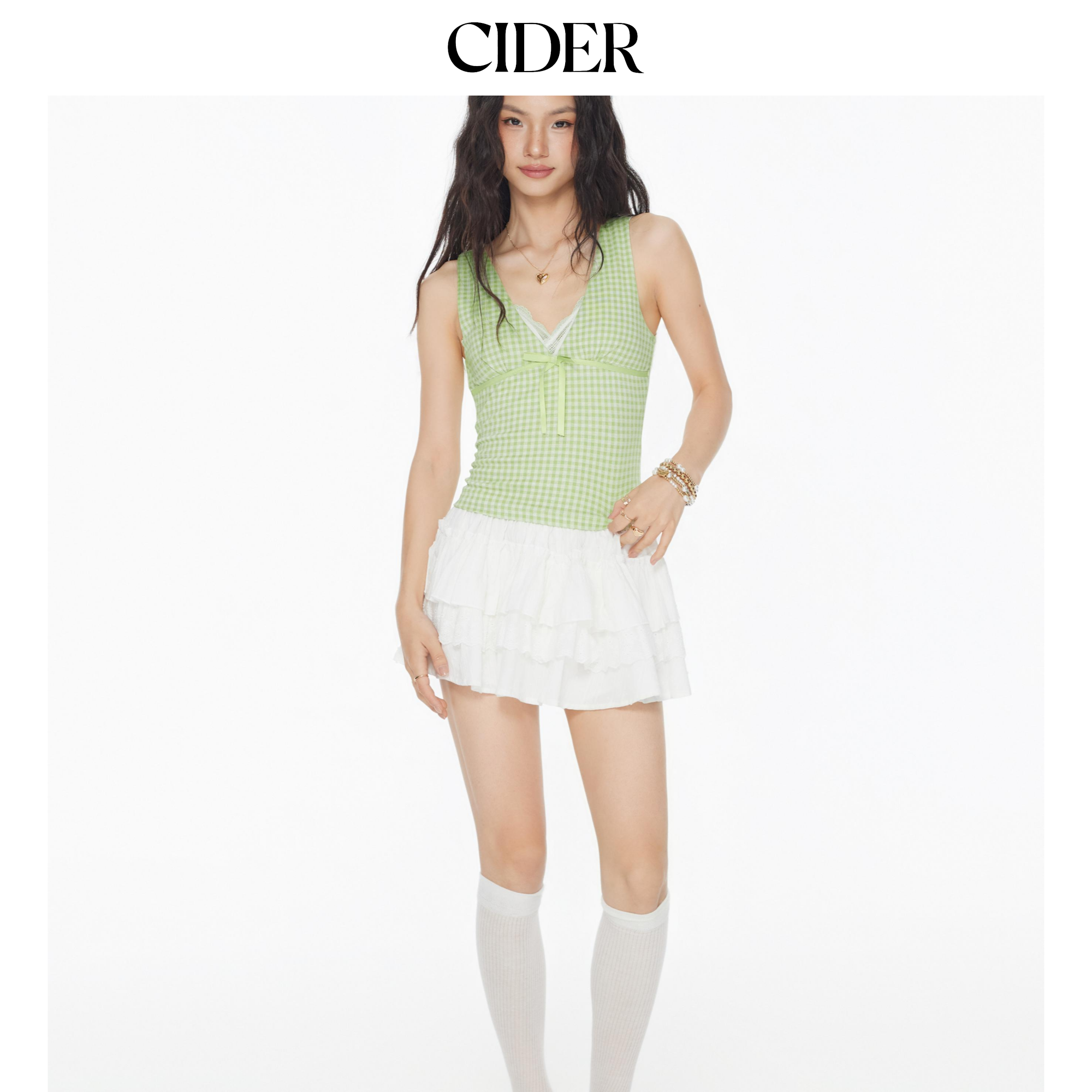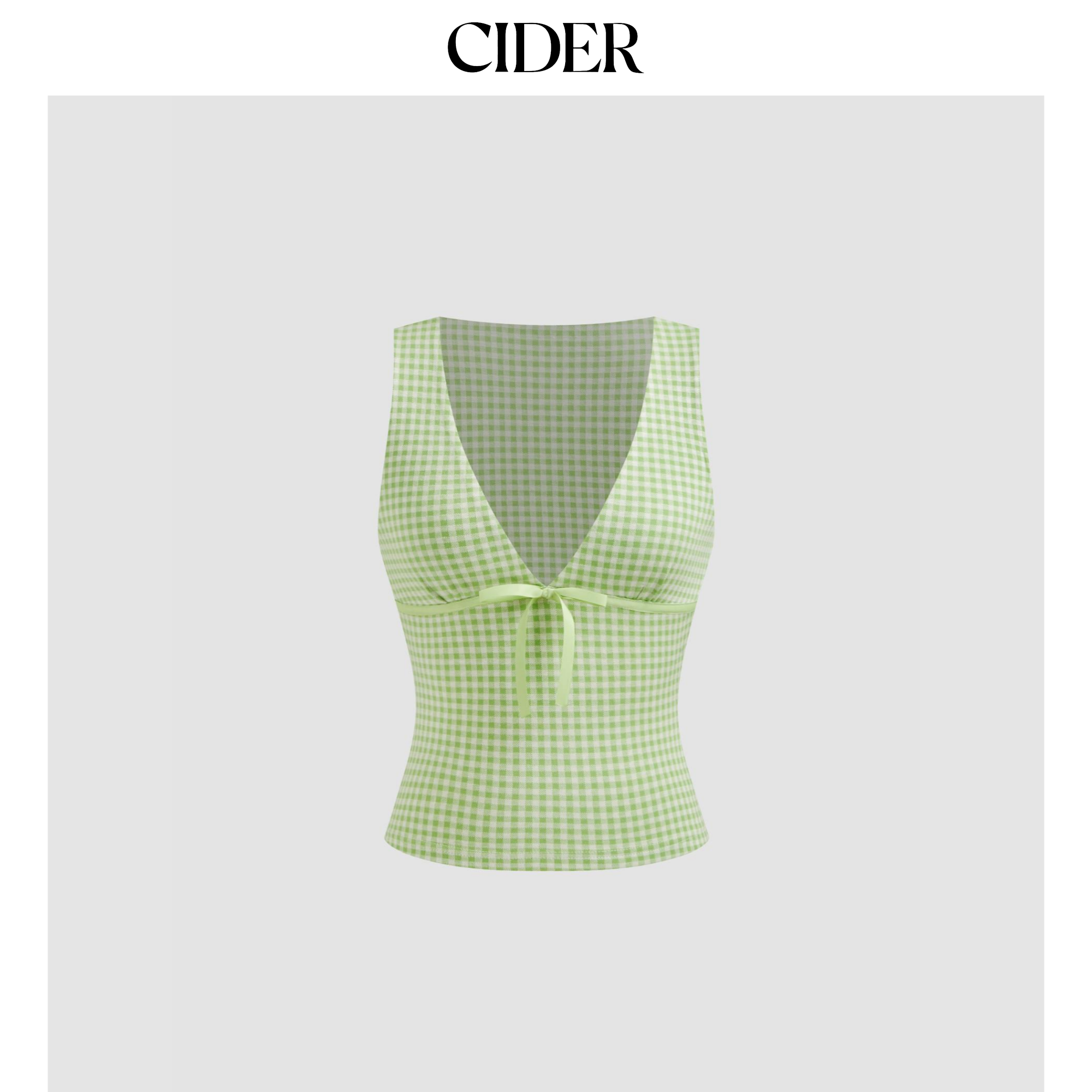【明星同款】CIDER 正品辣妹深v领格纹小蝴蝶结上衣114514060