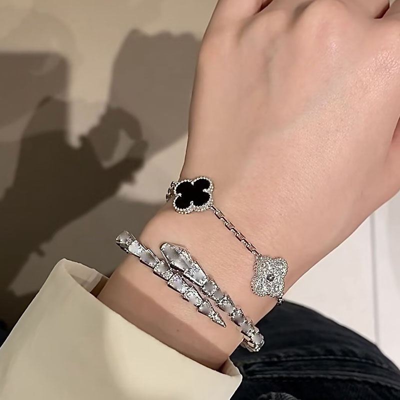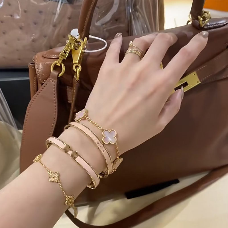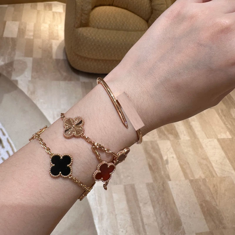2025四叶草玛瑙石五花手链女轻奢高级感18K玫瑰金手串黄金红玛瑙