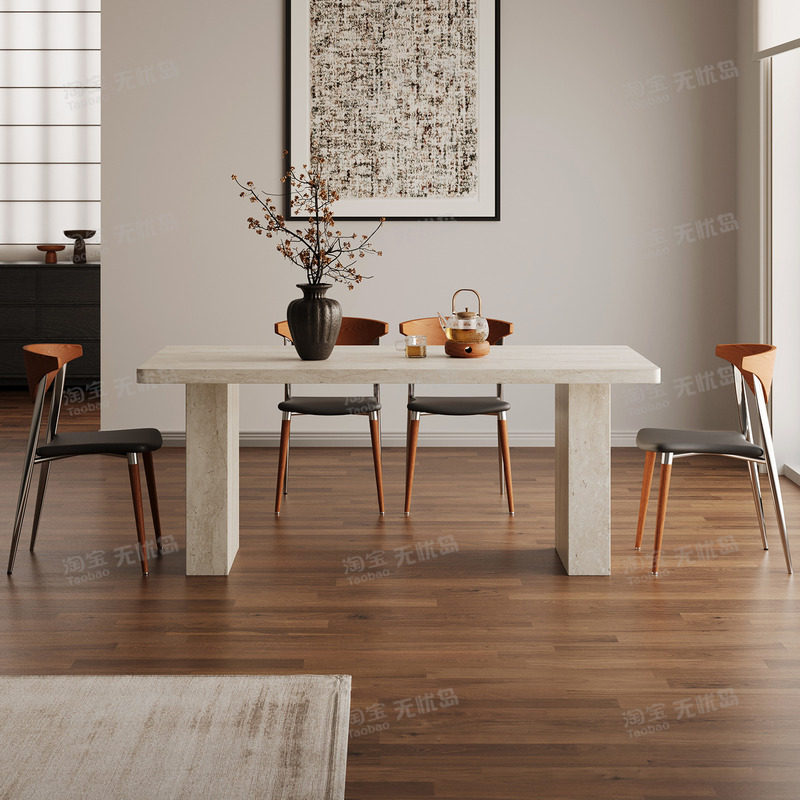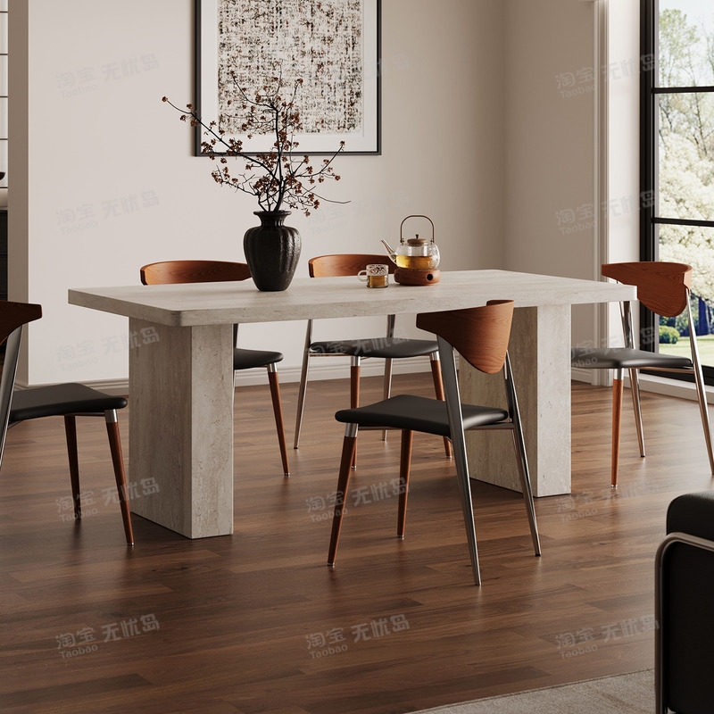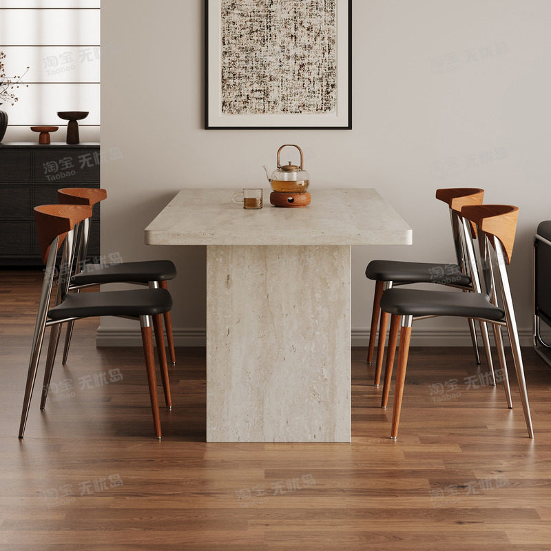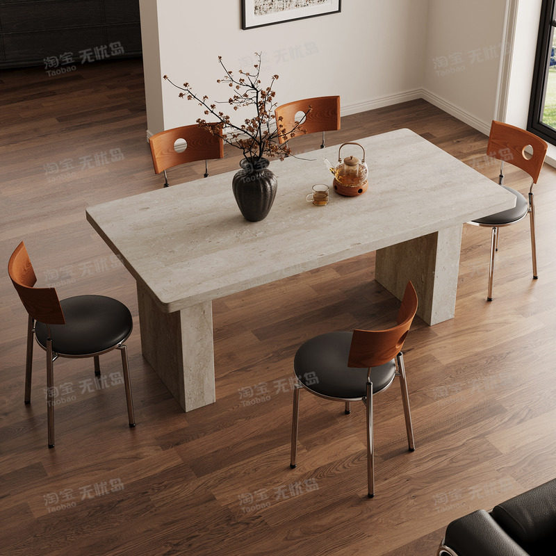 洞石全包边餐桌法式复古高级感家用网红小户型中古长方形岩板餐桌