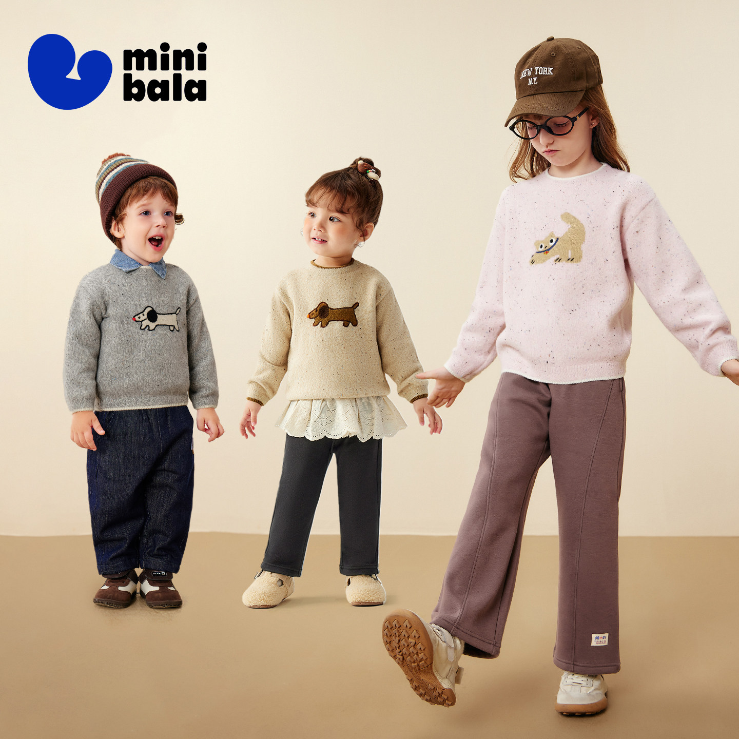 迷你巴拉男女童宝宝毛衣冬新品柔软亲肤萌趣动物图案提花毛衫