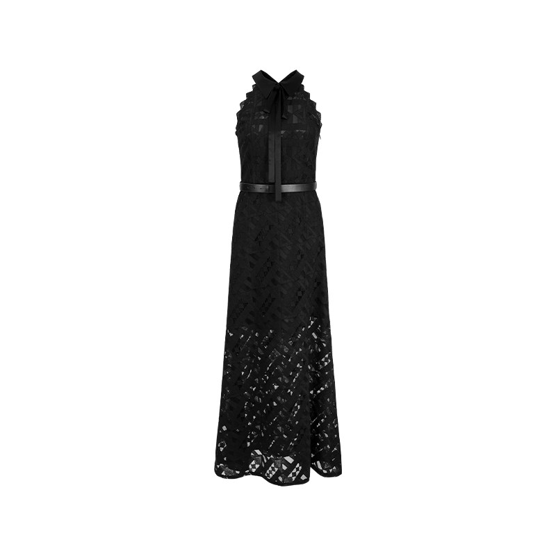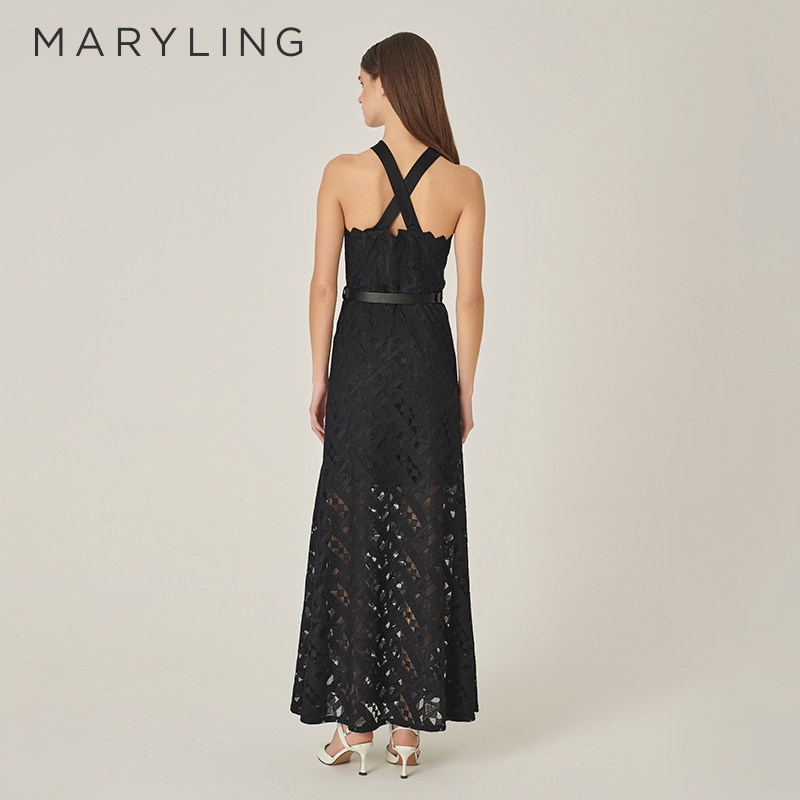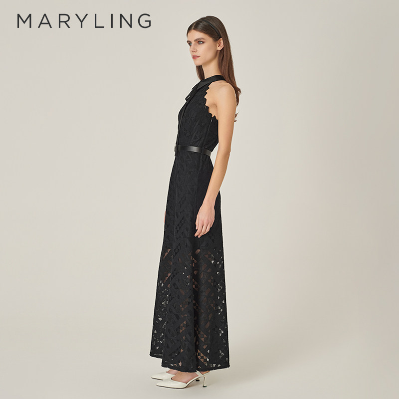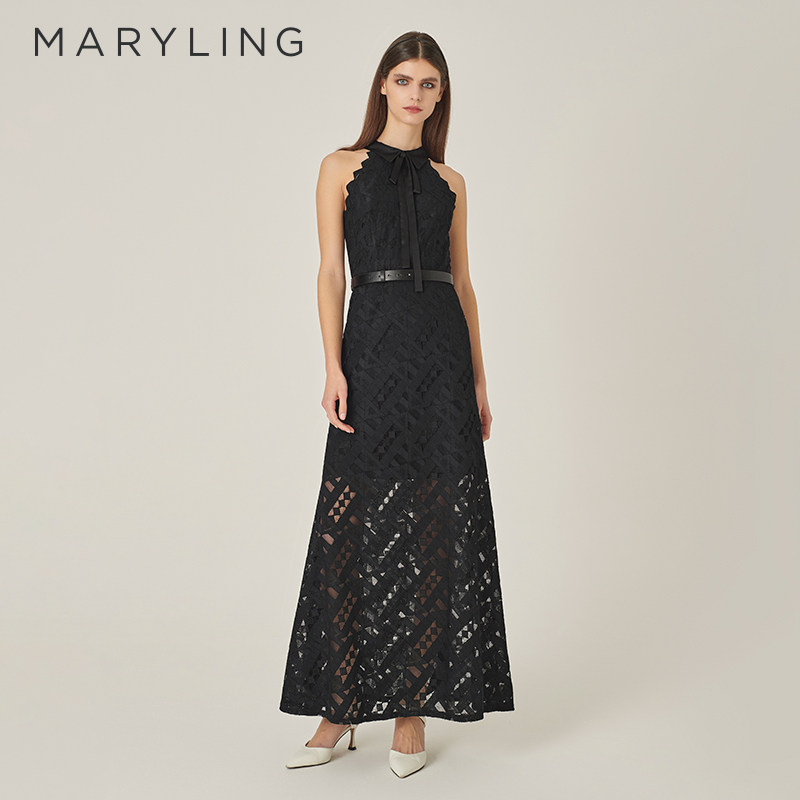 MARYLING玛俪琳初秋新品黑色小翻领蕾丝鱼尾礼服裙A1EFW68010