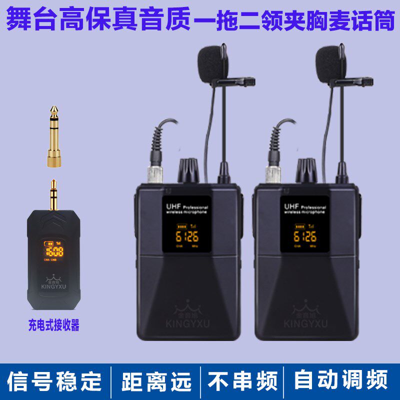 专业舞台演d出一拖二无线领夹胸麦头戴主持人肤色耳麦充电麦克话