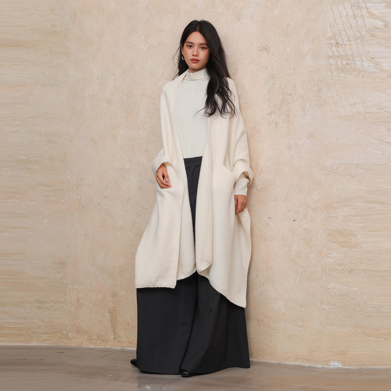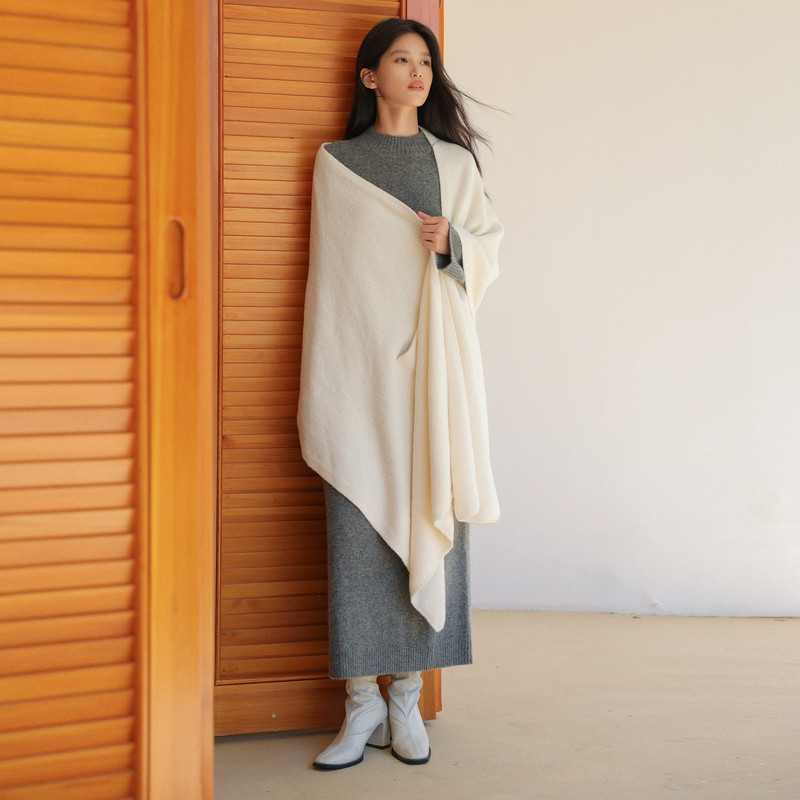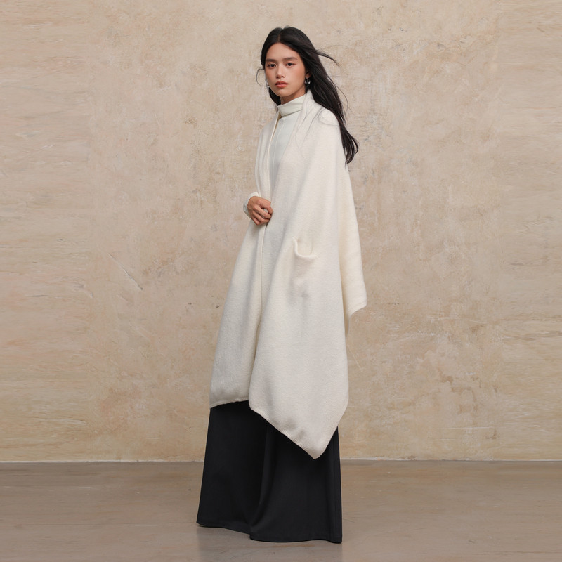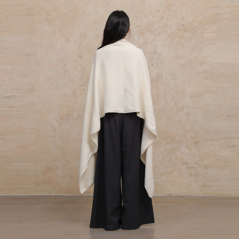 黑标BAIZHUO商场同款25秋新款轻柔廓形羊毛针织A型披肩AZ53PJ303