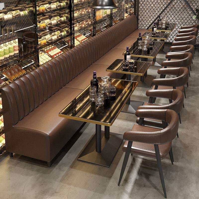 工业风酒吧清吧靠墙卡座沙发转角咖啡餐厅奶茶店桌椅双人商用家具