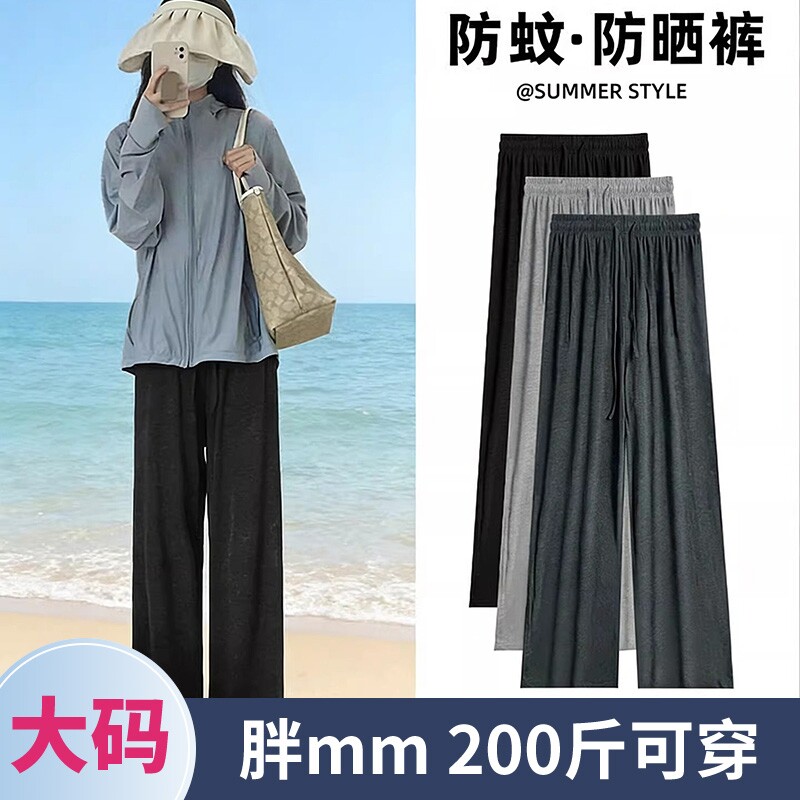胖mm大码灰色阔腿裤女春秋高腰垂感直筒休闲舞蹈防蚊凉凉裤200斤