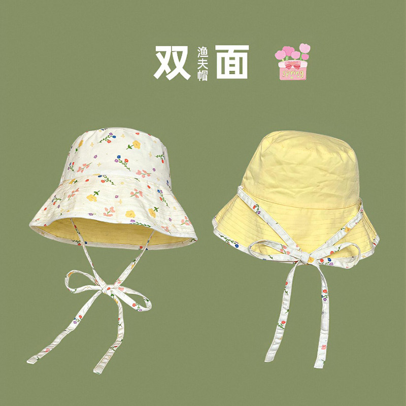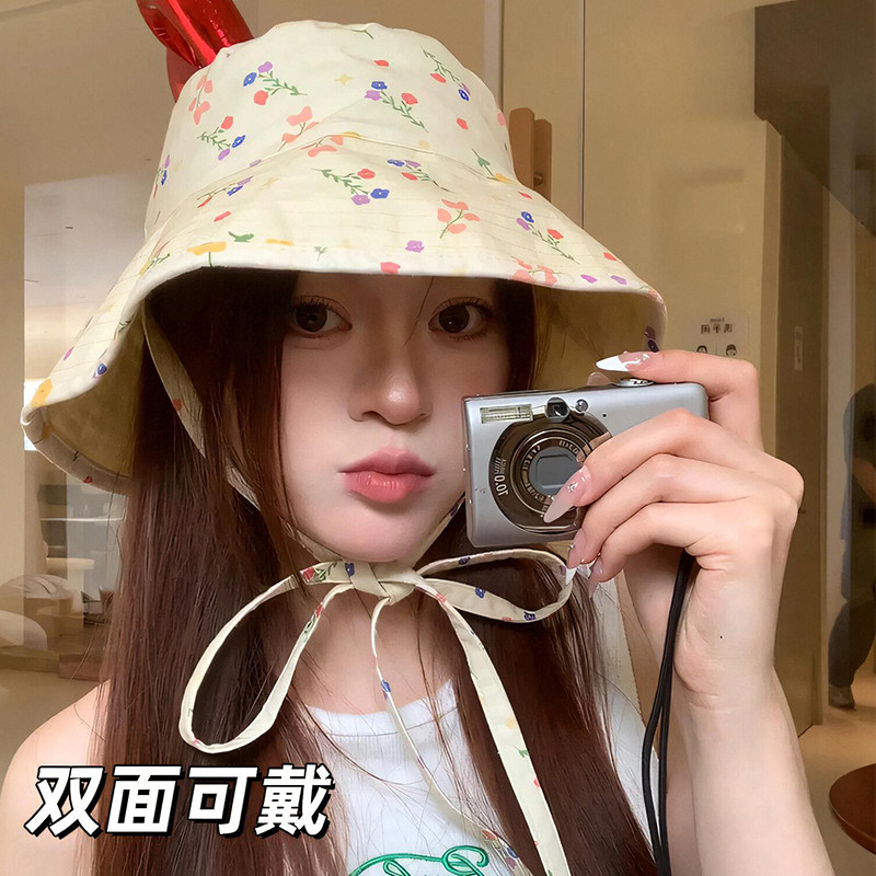 2025年双面夏季大帽檐遮阳日系渔夫帽女可爱甜美防晒碎花帽子显脸