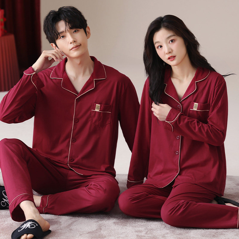 新郎新娘结婚睡衣情侣套装春秋款纯棉新婚新人红色一男一女家居服
