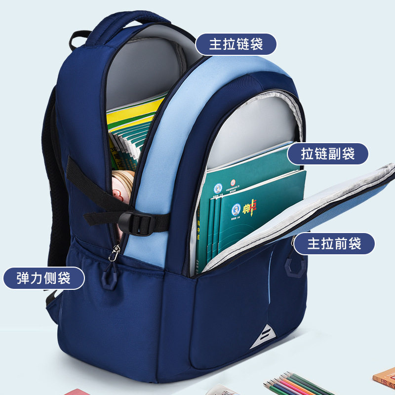 新款小学生书包男孩女生背包护脊双肩包轻便海绵背垫透气防水简约