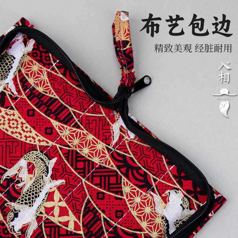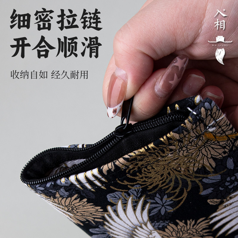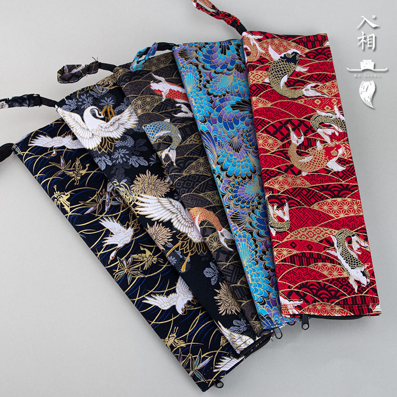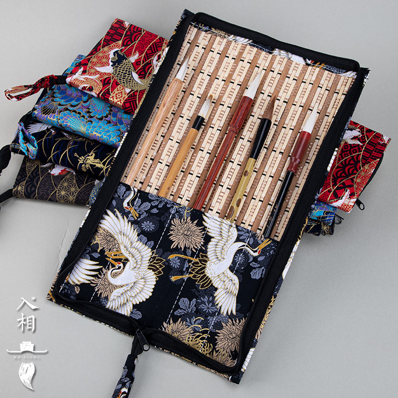 入相文房毛笔笔帘浪蓝孔雀翎精致手提文房笔袋便携式毛笔收纳拉链可封闭式毛笔手拉古风锦鲤仙鹤海