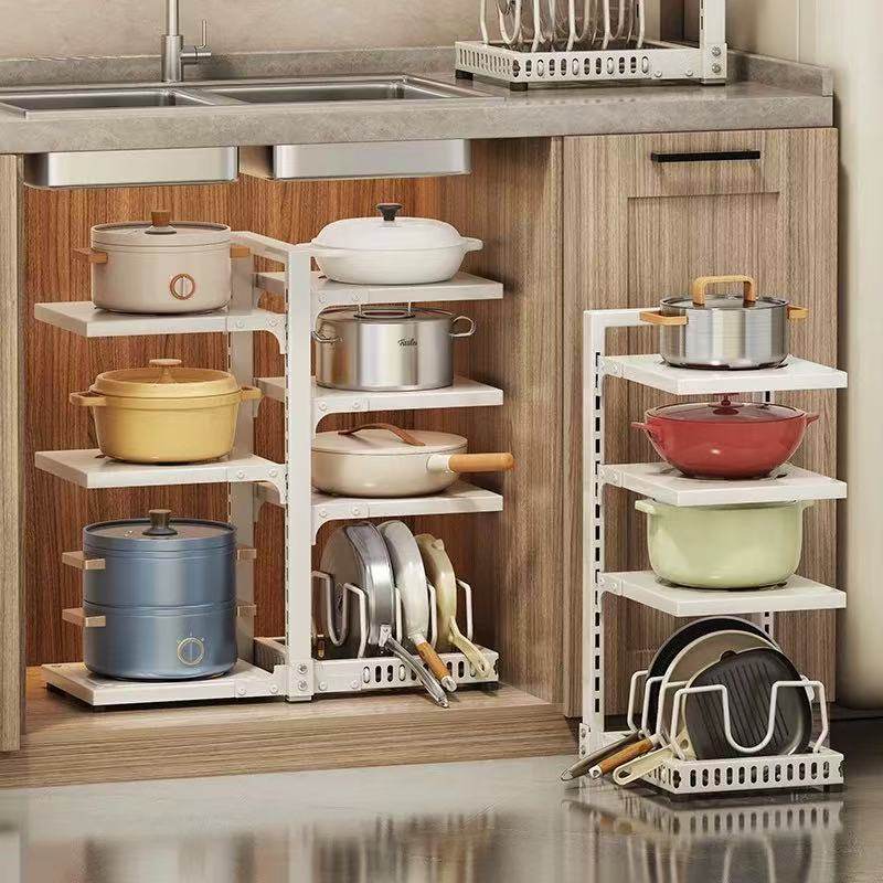 厨房置物架家用多功能锅具收纳架多层橱柜下水槽灶台分层放锅架子