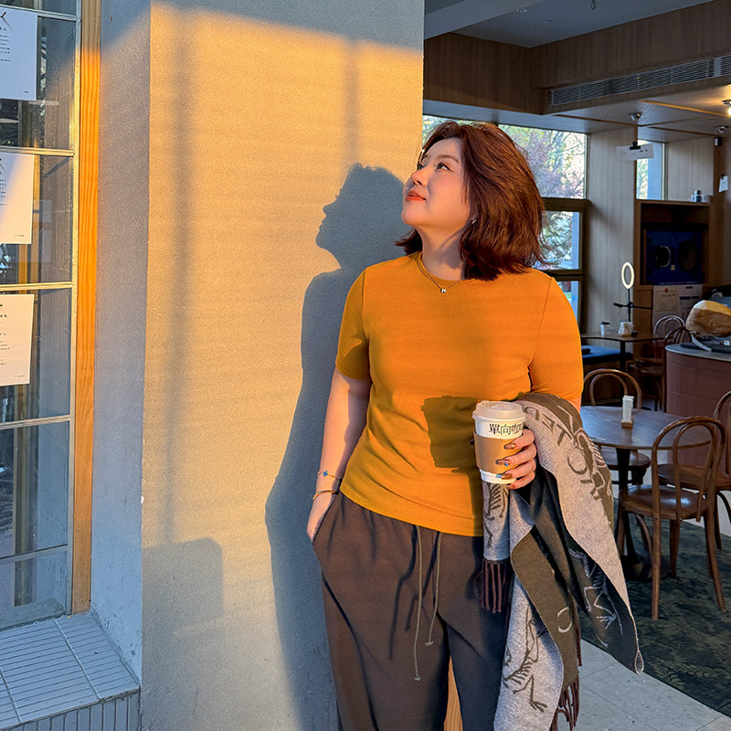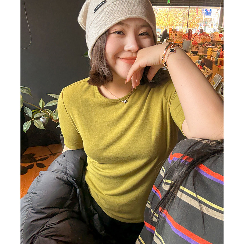 胖mm秋冬精致磨毛短袖打底衫木子理想大码女舒服T恤显瘦内搭200斤