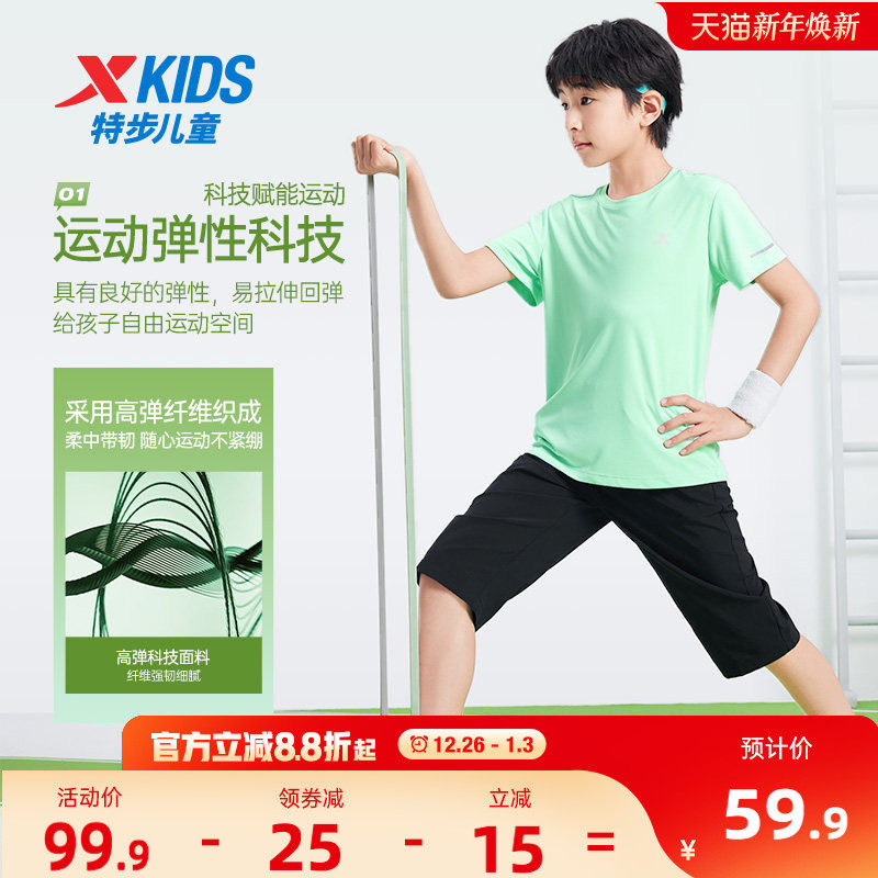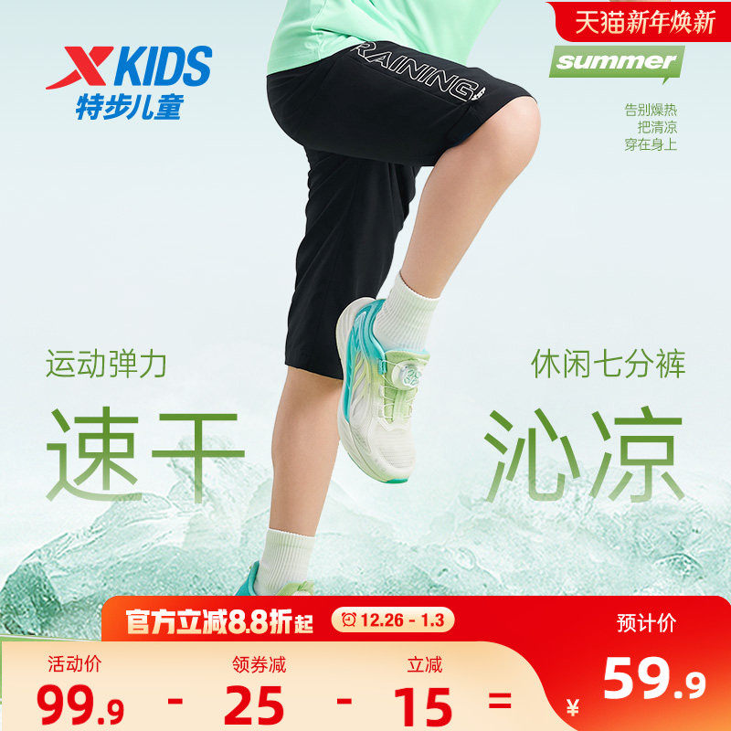 特步童装男童速干七分裤2025夏季新款儿童裤子薄大童短裤中裤夏装