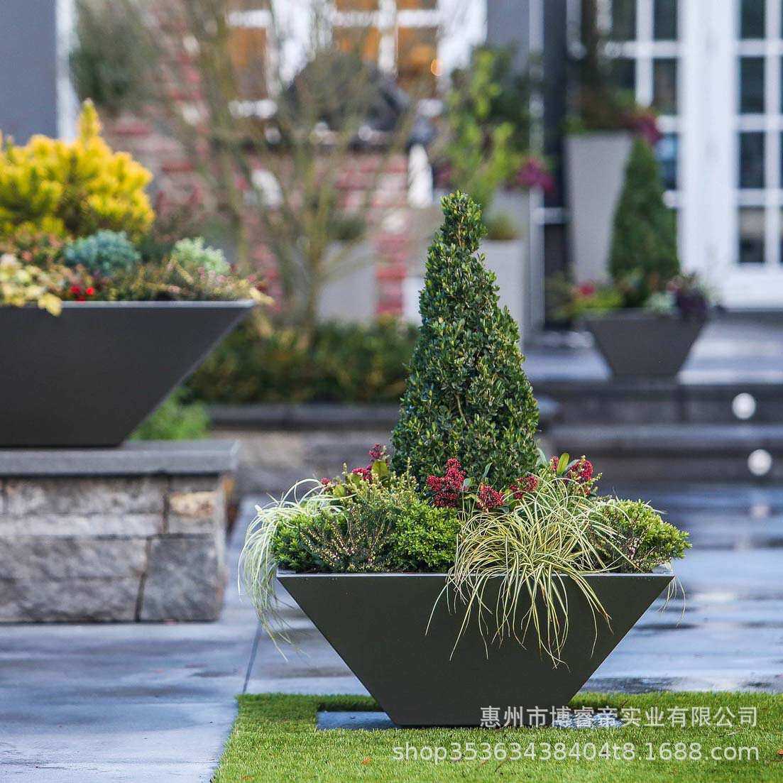 造型玻璃钢花盆商场美陈户外落地方形花箱组合花钵北欧创意大花器