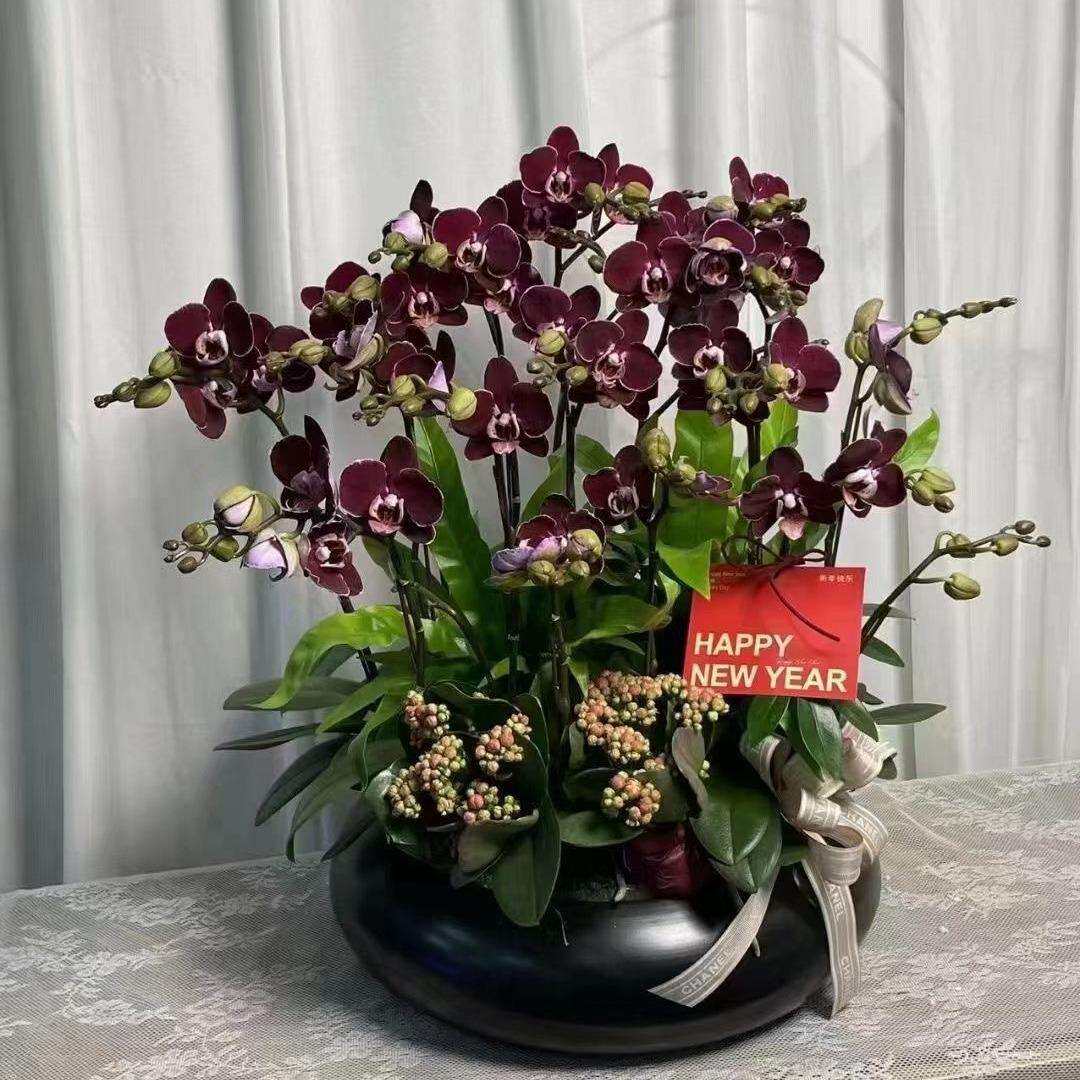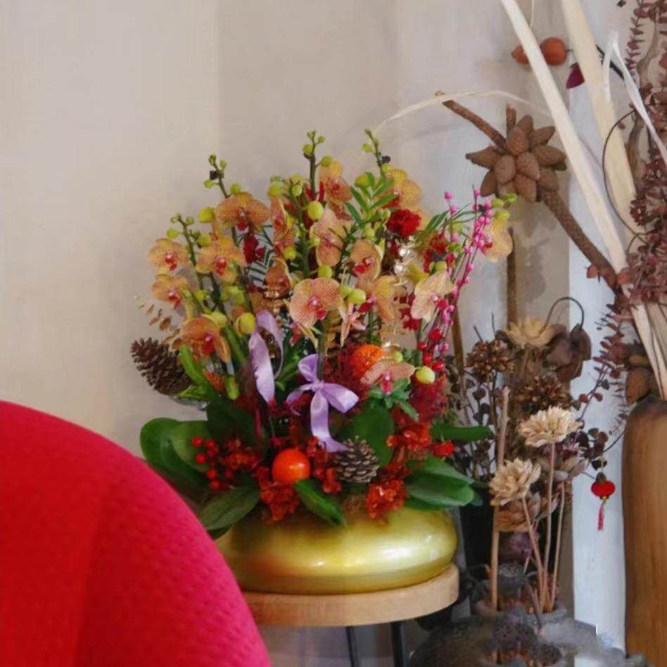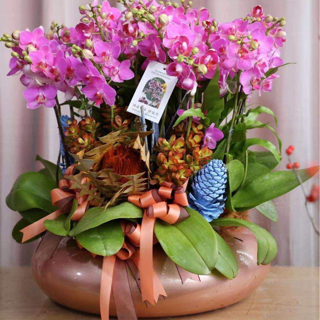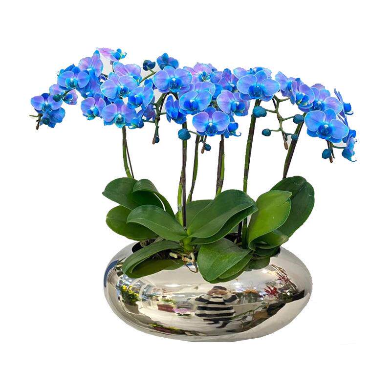 40cm口径纳米金蝴蝶兰铁艺花盆花器金属银柳盆器仿真花新中式摆件