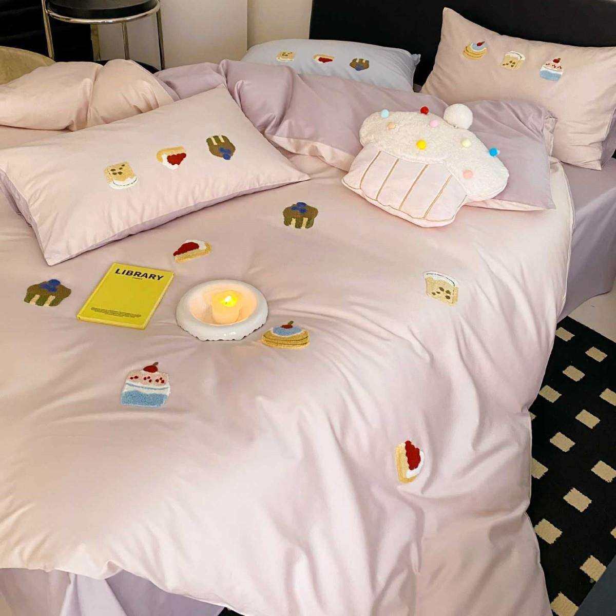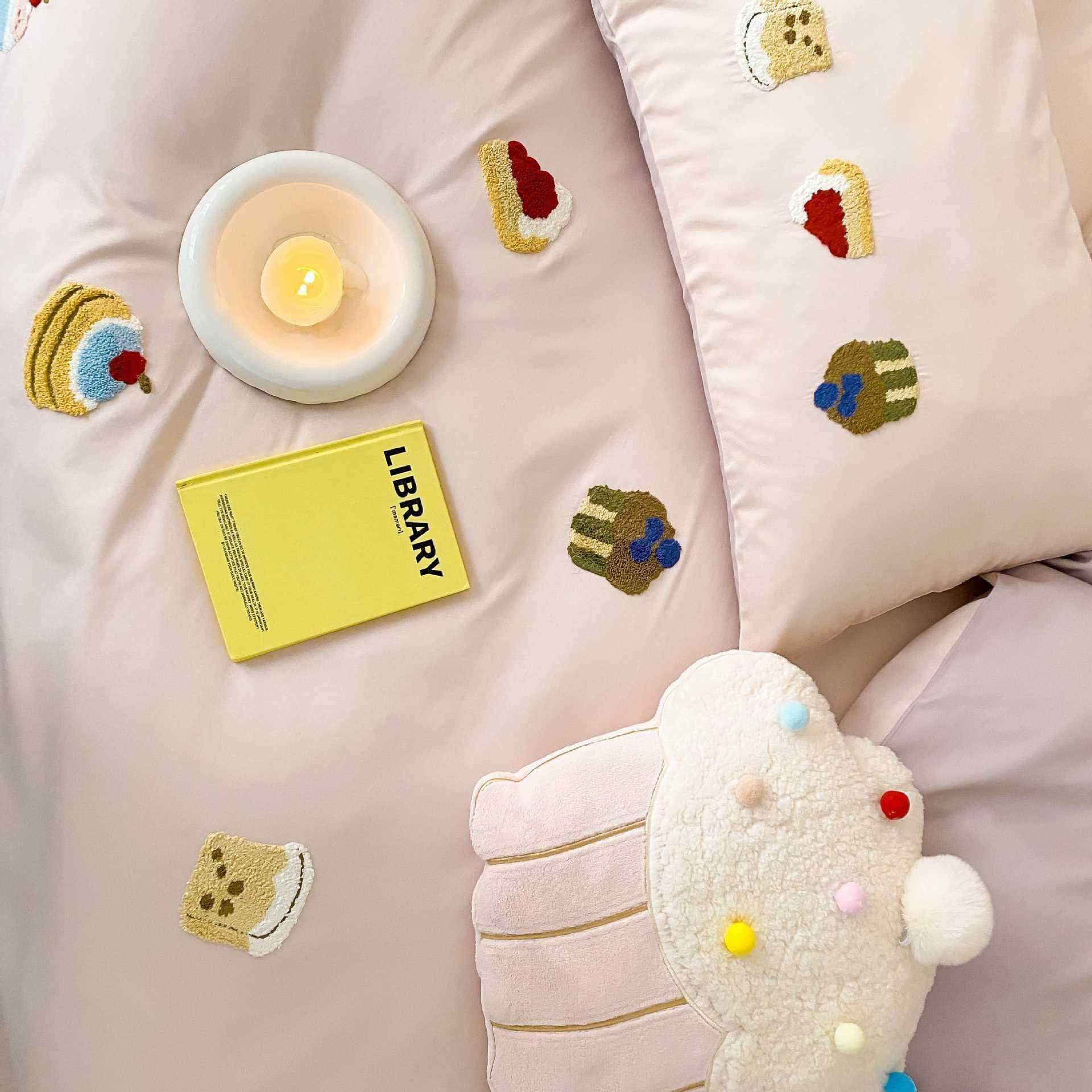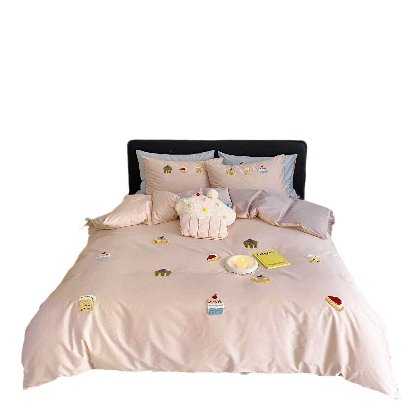 裸睡全棉长绒棉四件套可爱小蛋糕毛巾绣被套纯棉儿童款床品