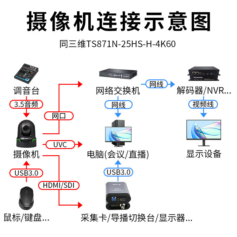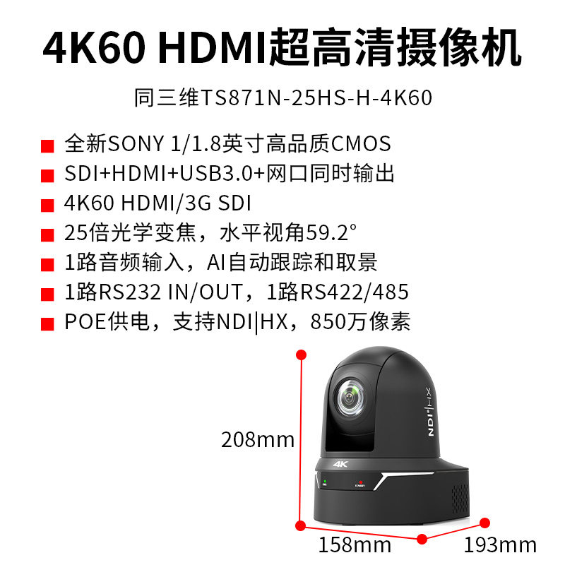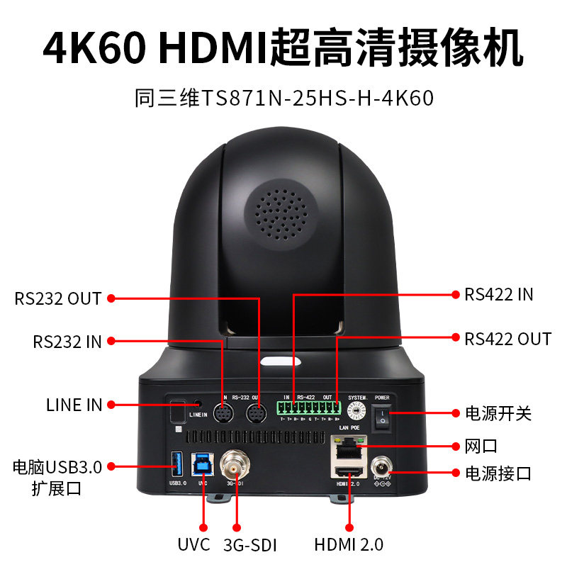 同三维TS871超清视频会议摄像头HDMI+SDI+U3网络云台直播机4K60