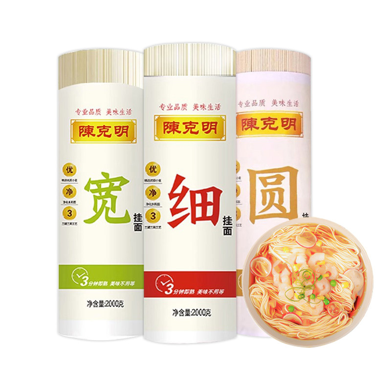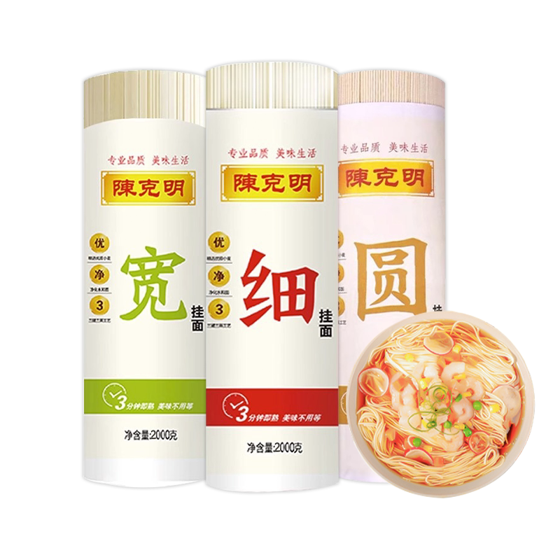 陈克明宽细圆组合挂面2000g挂面面条龙须爽滑劲道速食面早餐拌面