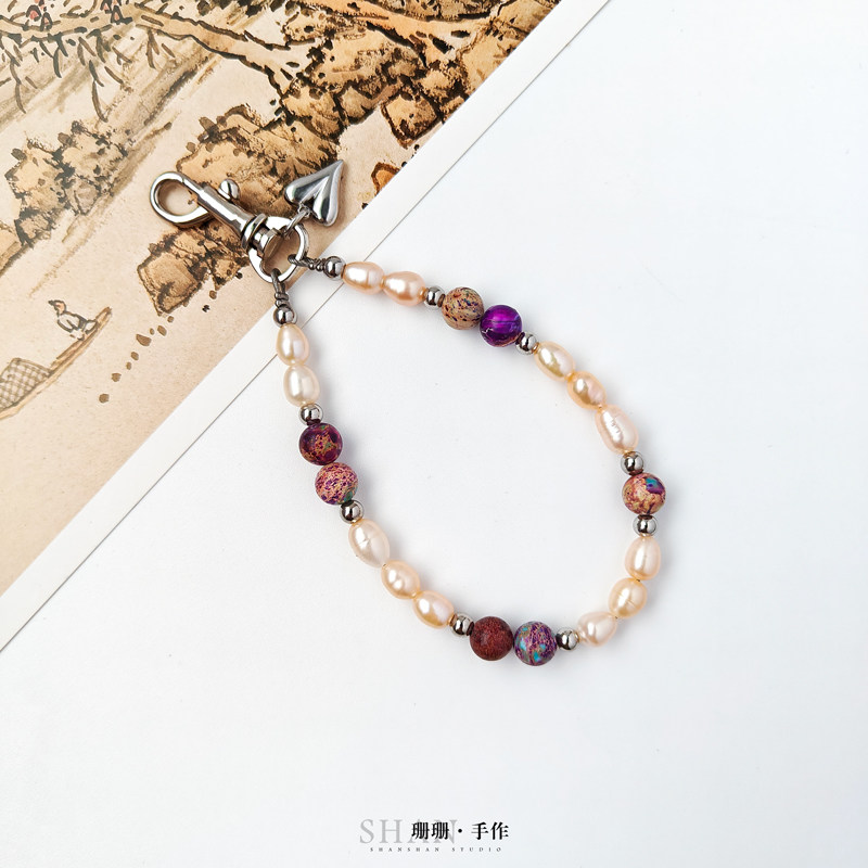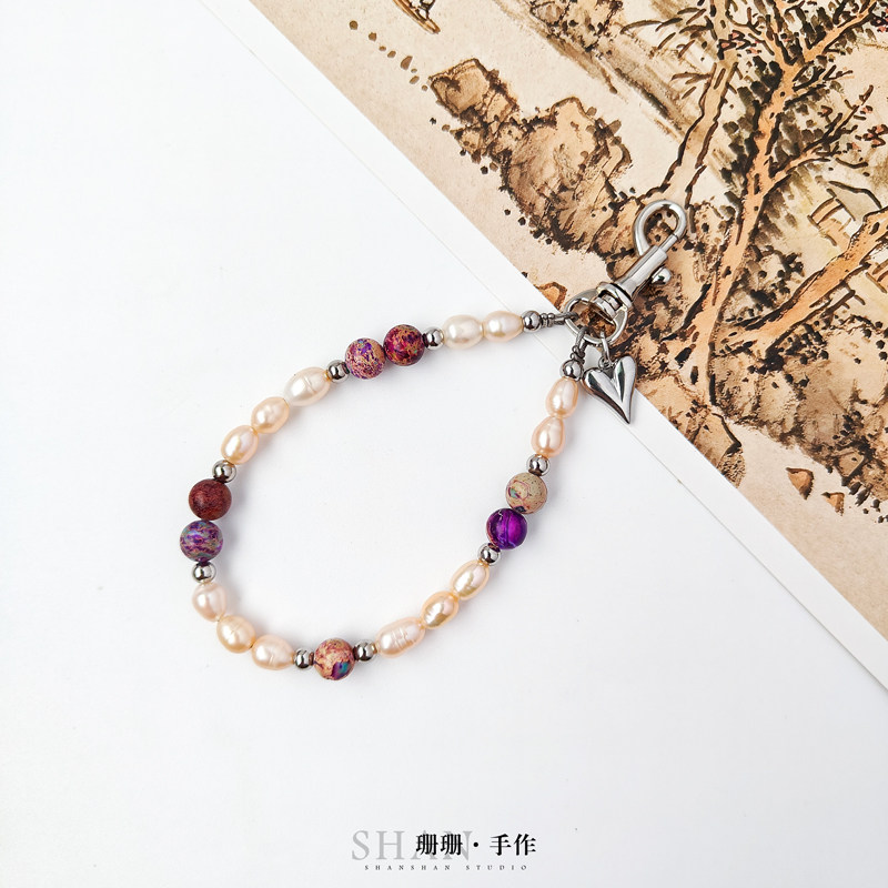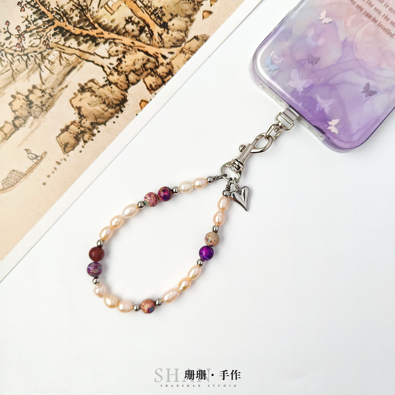 原创天然淡水珍珠手机链帝皇石手腕挂绳钥匙包包挂件高级气质礼物