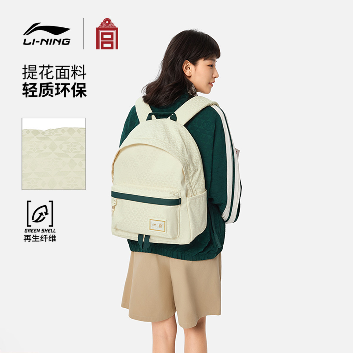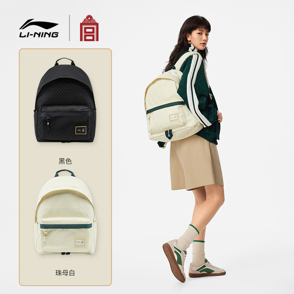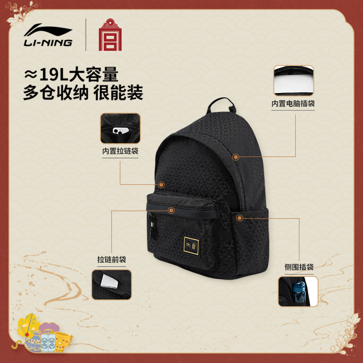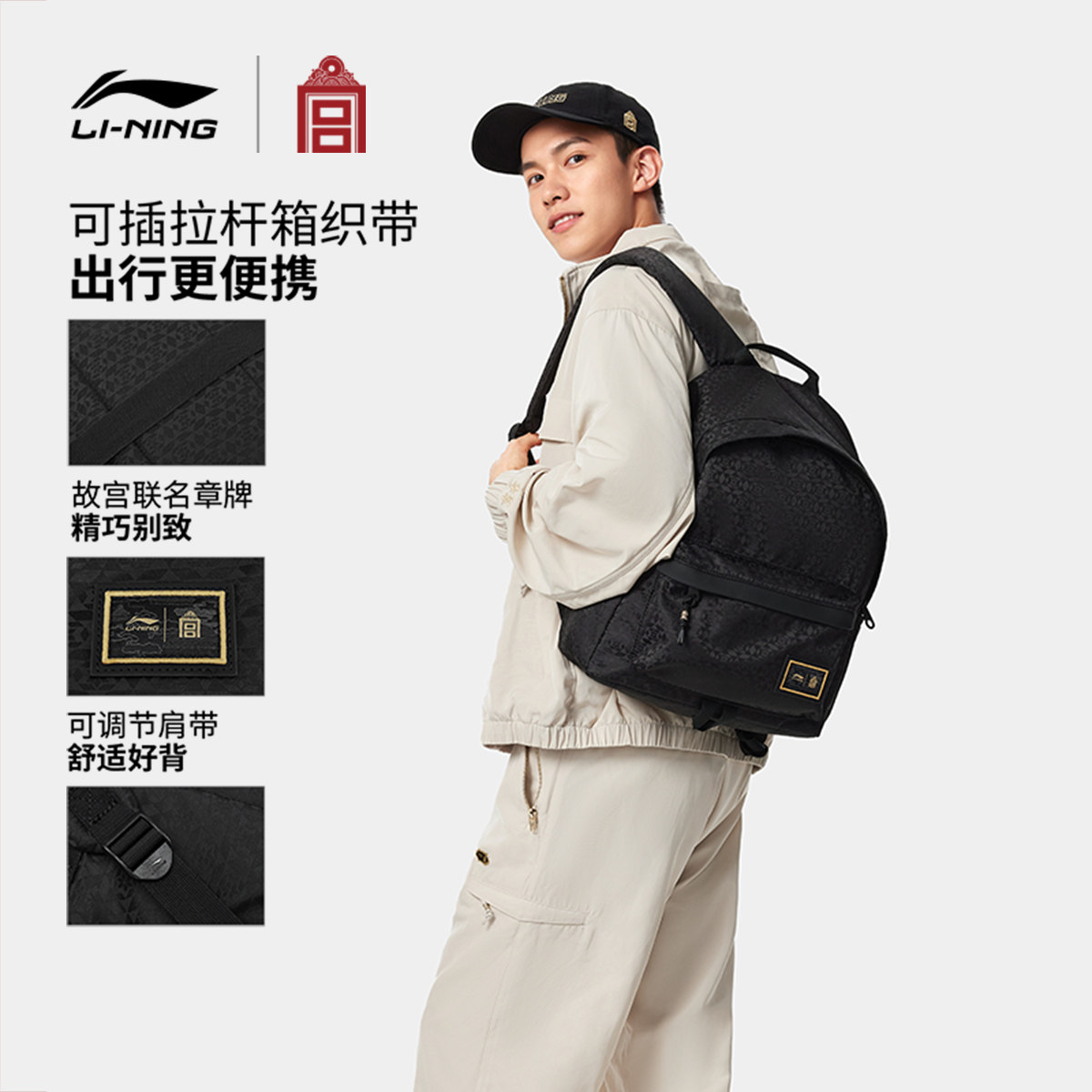 李宁中国文化系列故宫联名双肩包男女2026新款学生背包环保运动包