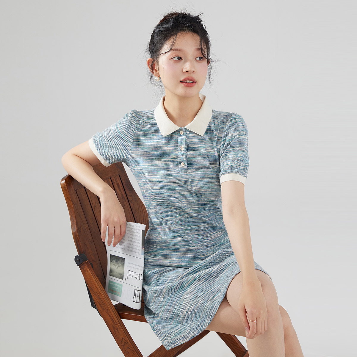 森马连衣裙女夏季撞色polo领短裙字母休闲显瘦运动风学院风百褶裙