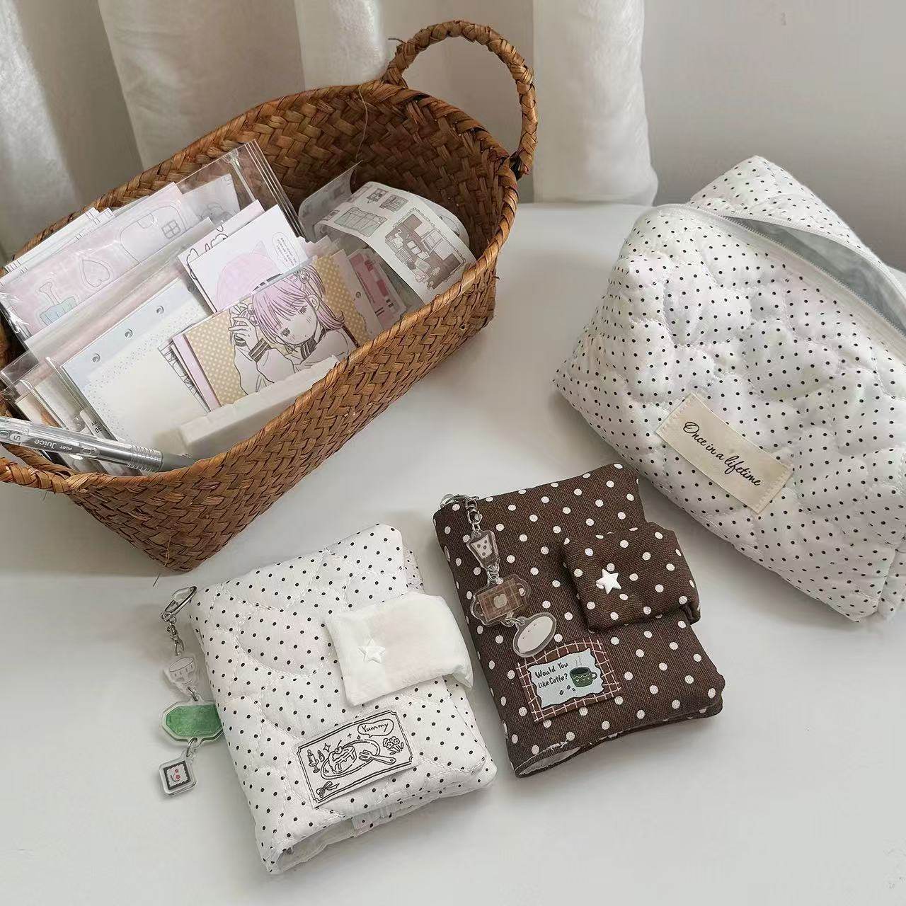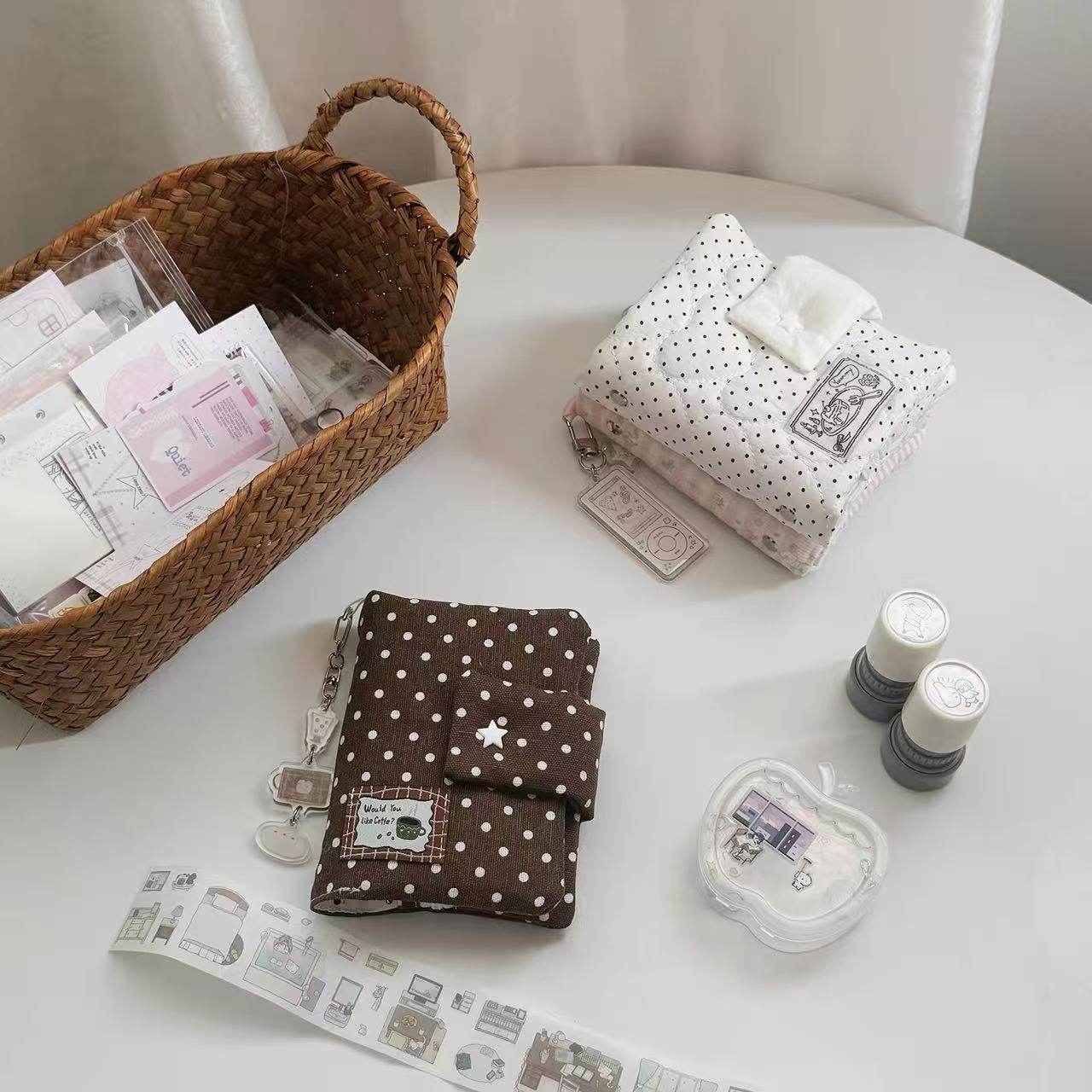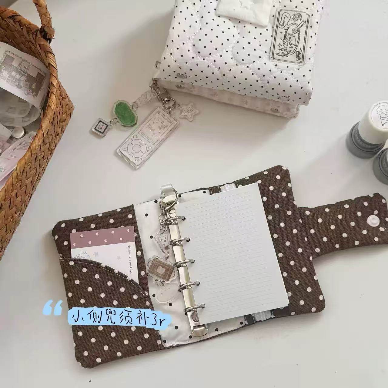 韩版栗子棕波点m5手帐本布艺高颜值学生便携可拆卸活页日记笔记本