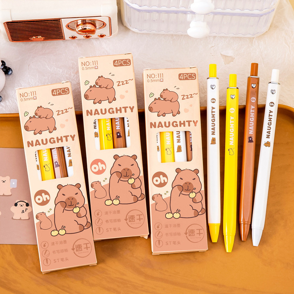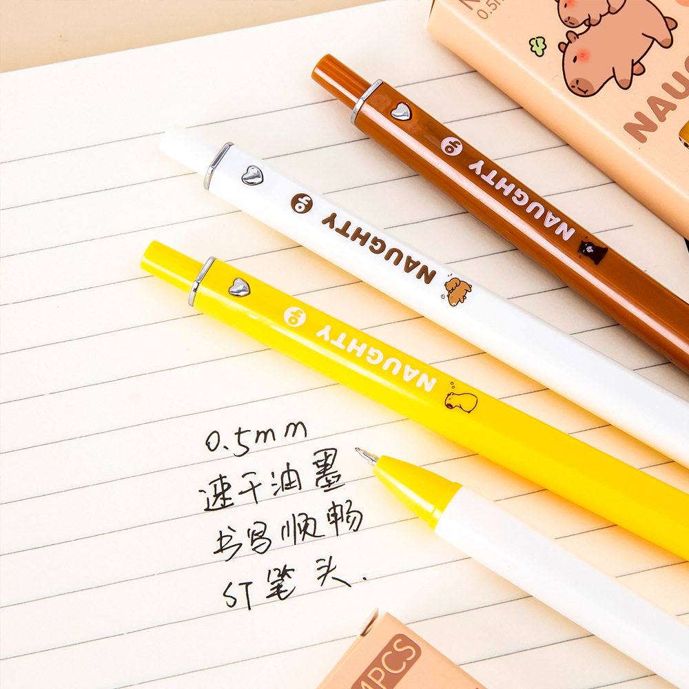 校园礼品卡通水豚盒装中性笔 学生大容量考试刷题笔可爱ST头速干