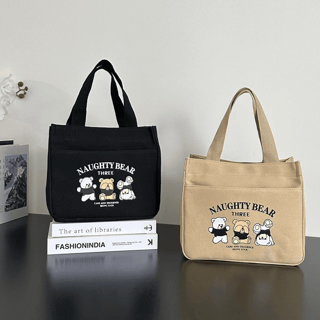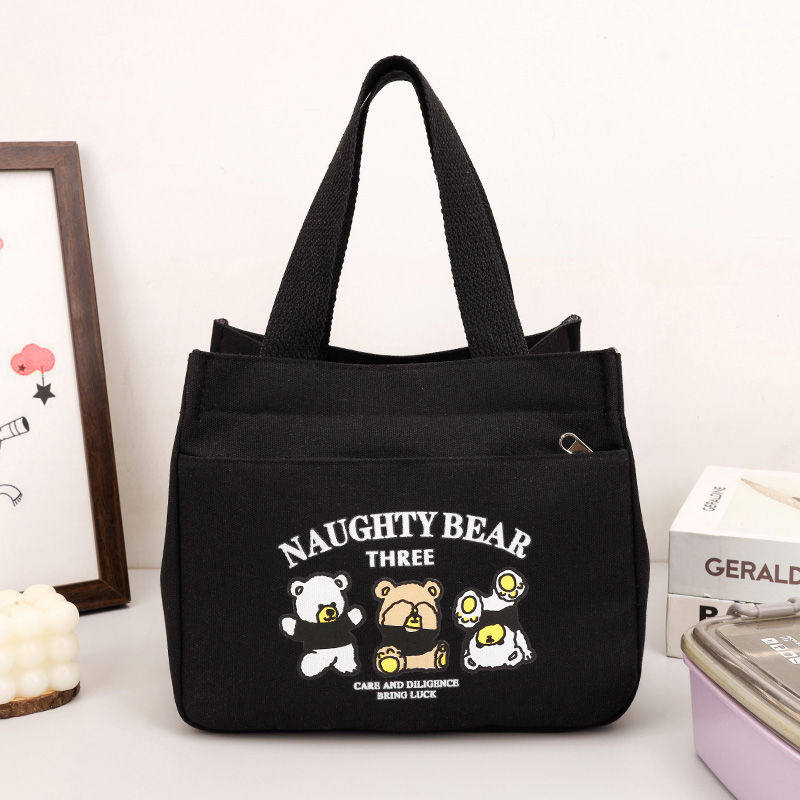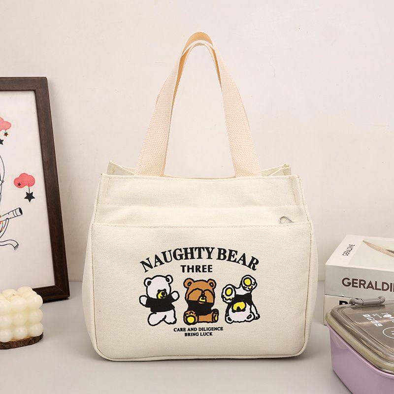 高颜值帆布手提包宝妈外出简约小巧立体拎包通勤加厚上班便当饭袋