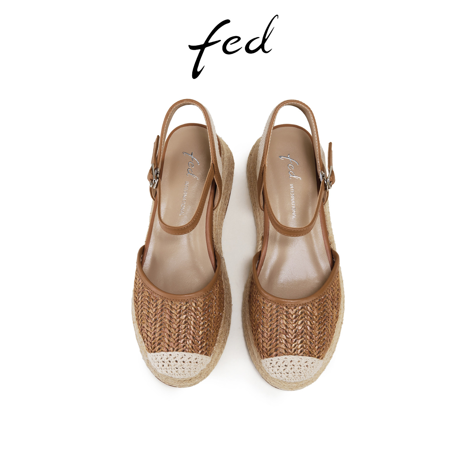 fed包头凉鞋女夏季新款女鞋厚底复古编织渔夫凉鞋女款S0515-YA582