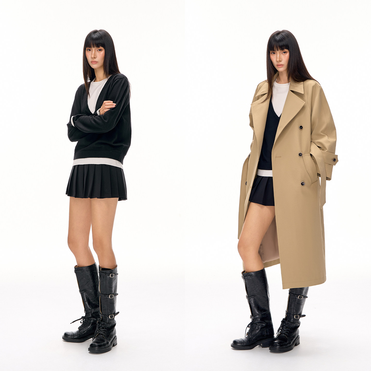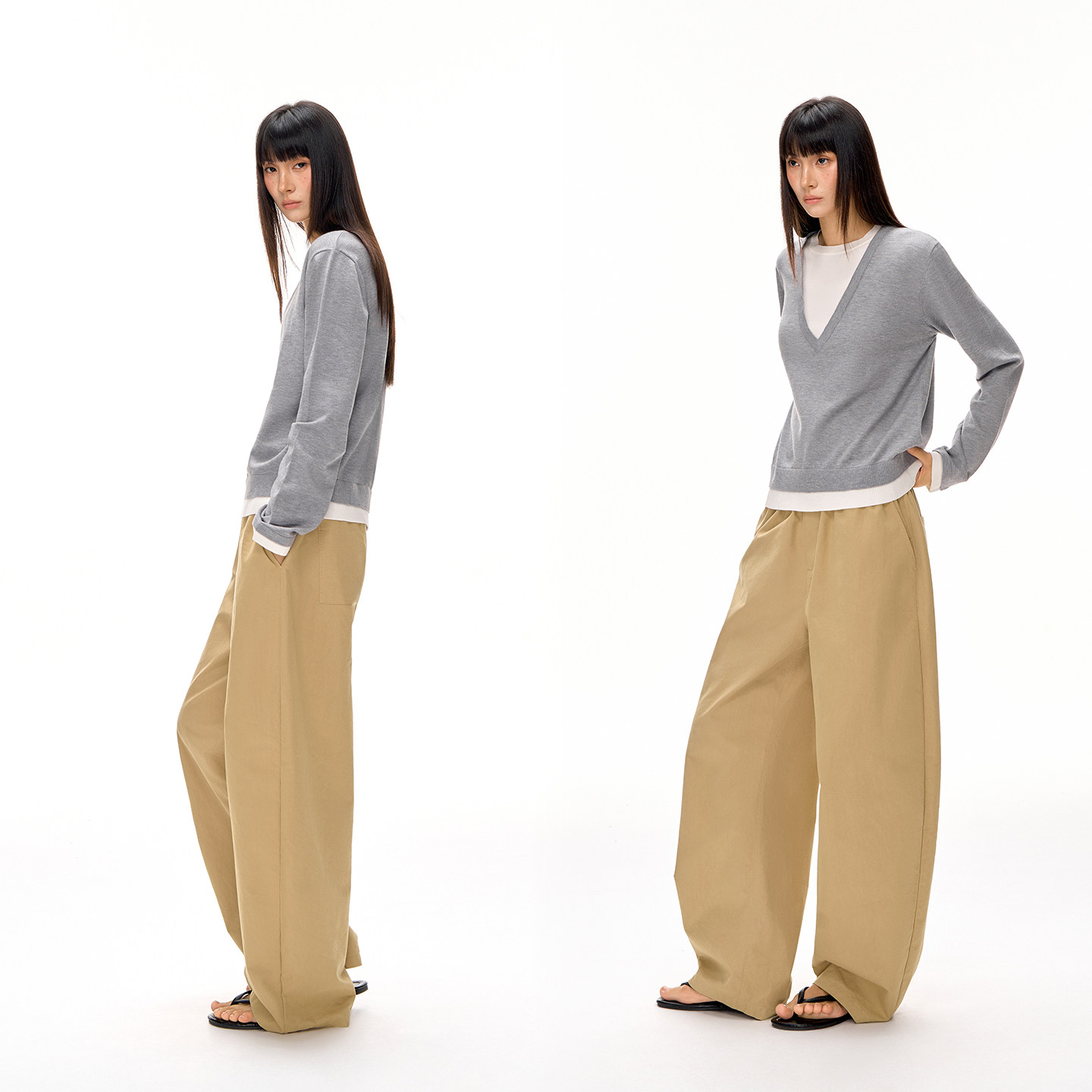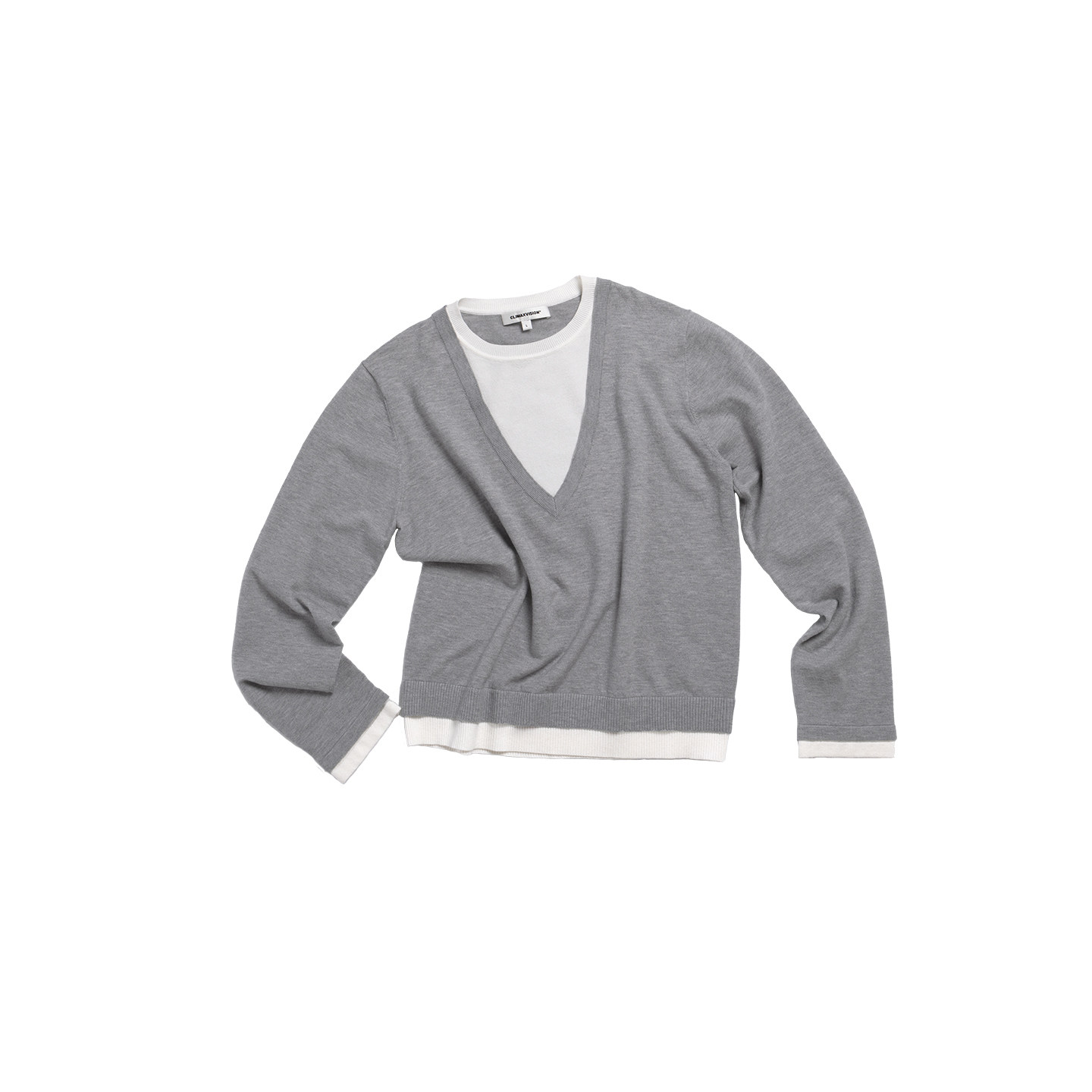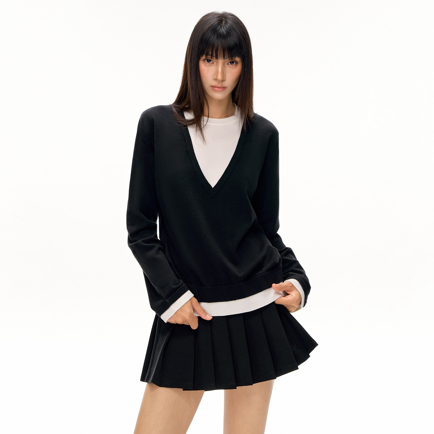 CLIMAX VISION超柔轻盈莫代尔羊毛混纺V领撞色叠穿假两件针织衫
